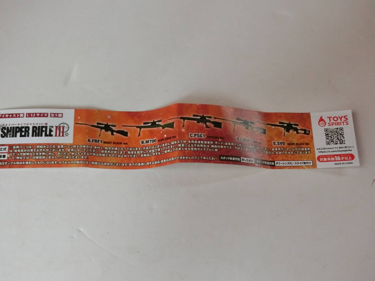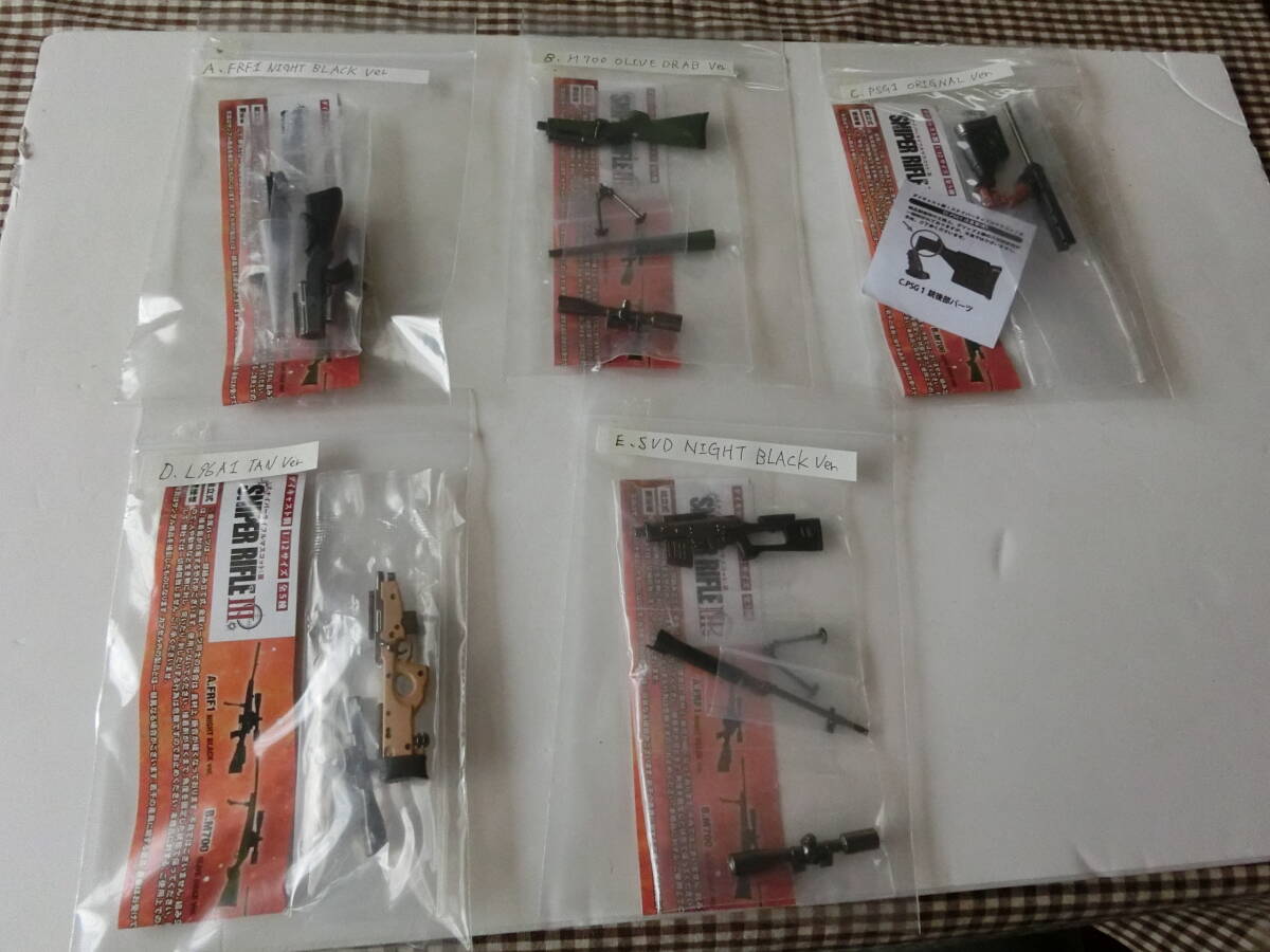 トイズスピリッツ ダイキャスト製!スナイパーライフルマスコット3 5種セット、1/12可動フィギュアとの相性抜群 金属の渋い輝きと重厚感な仕上がりです。スナイパーライフルの第3弾が登場ダイキャスト製。A:FRF1 NIGHT BLACK ver.、B:M700 OLIVE DRAB ver.、C:PSG1 ORIGNAL ver.、D.L96A1 TAN ver.、E.SVD NIGHT BLACK ver. 5種セット。落札後はノークレーム・ノーリターンでお願いします。発送はクリップポストもしくはゆうパックで対応させて戴きます。