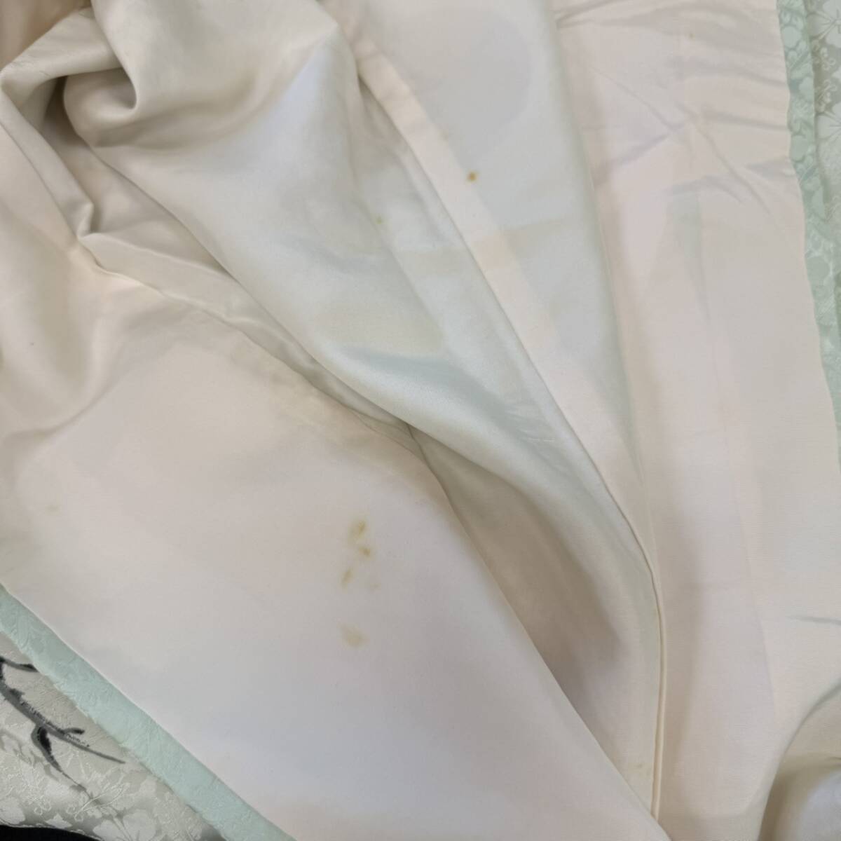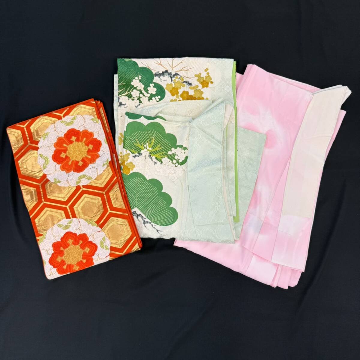 商品名 :振袖、長襦袢、帯 3点セット メーカー :不明 付属品 :なし サイズ : ●緑振袖: 着丈約150㎝・身幅約61㎝・袖から袖まで約128㎝ 振袖の長さ約93㎝ ●ピンク長襦袢: 着丈約124㎝・身幅約61㎝・袖から袖まで約116㎝ 袖の長さ約93㎝ ●帯:長さ約412㎝・幅約30㎝ ※若干の誤差がある場合がございます。 状態について ランク 【【D】 全体的に目立つ汚れ・型崩れ等が御座います。 コメント : 着物内側に全体的に目立つ黄ばみ、汚れが多々御座います。 (画像4、5参照) ───────────────[ 状態ランク表 ]──────────────── 【N】 新品・未使用品の新古品です 【S】 ほつれ・汚れがほとんど見受けられず、非常に状態の良い商品です 【A】 わずかにほつれ・汚れがありますが、全体的に状態の良い商品です 【B】 ほつれ・汚れ等、使用感が見受けられますが、 中古品としては比較的良好な状態です 【C】 ほつれ・汚れ・型崩れ等目立つ使用感がありますが、ご使用には問題のない商品です 【D】 全体的に目立つ汚れ・型崩れ等が御座います。 【E】 汚れや型崩れが激しく、リメイクや生地としてのご利用におすすめです。 ※ランクは社内基準です。 ──────────────────────────────────────── 送付方法 :ゆうパック(着払い) 100サイズ 愛知県名古屋市からの発送となります。 ※出品時に商品を梱包しているため、 基本的に※「同梱不可」となります。 ※こちらの商品は発送のみの対応となります 防犯上の観点から、 【引取り限定】【家財便または引き取り】の商品以外は 直接の引取りはお断りさせて頂きます。 | |||