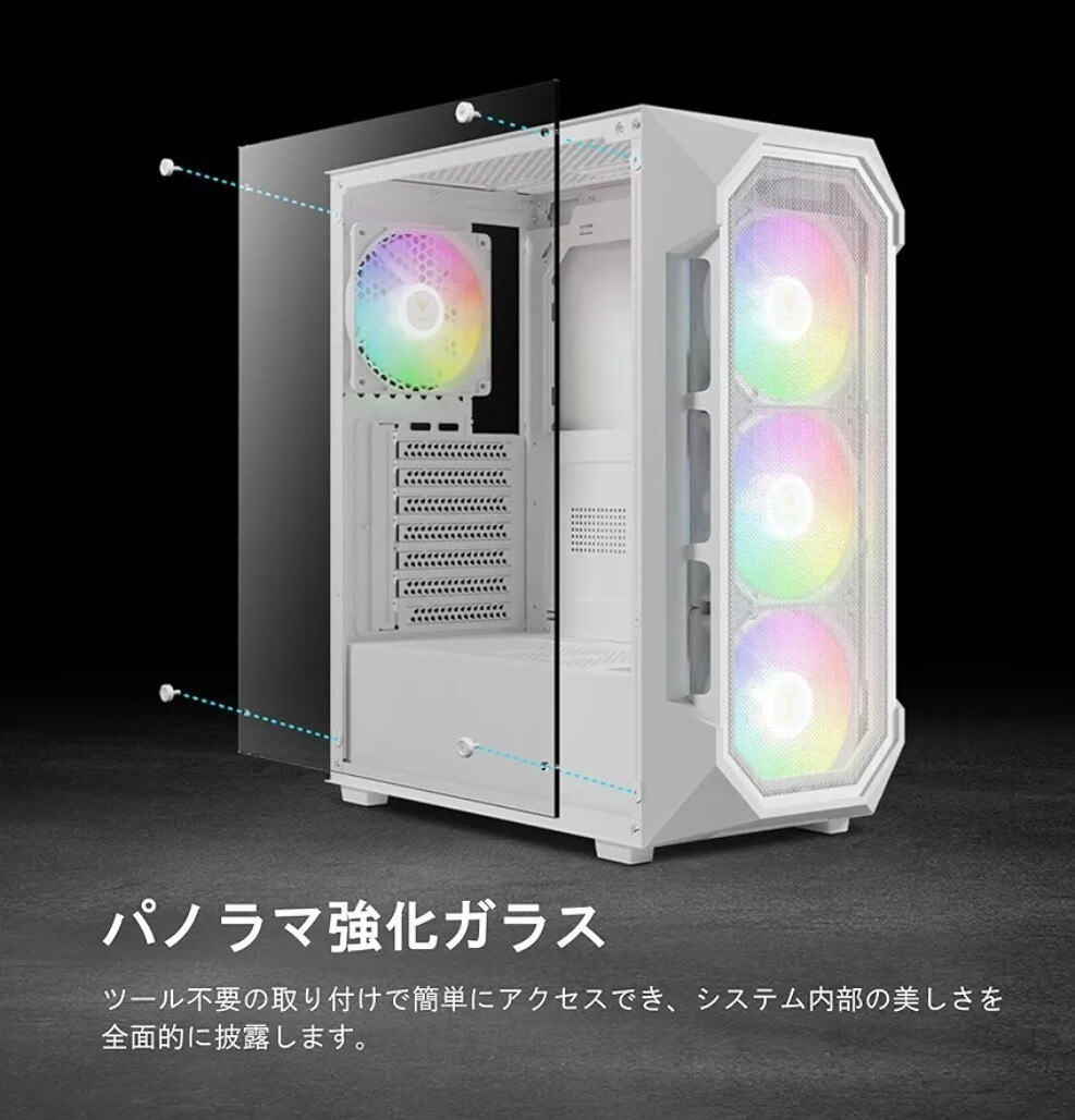 ・【クリアパノラマ強化ガラス】パノラマ強化ガラスのサイドパネルでビルドを披露し、コンポーネントとARGB照明をクリアに見せます。
