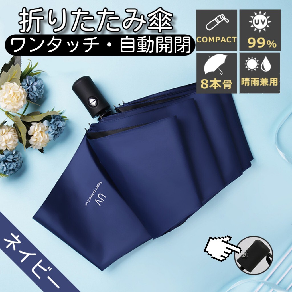 折りたたみ傘 ワンタッチ 自動開閉 8本骨 折り畳み傘 UVカット 耐風 撥水 軽量 コンパクト 長持ち 雨傘 日傘 UPF50+ 遮光 遮熱 晴雨兼用 梅雨対策 台風対応 紫外線遮断 携帯便利 男女兼用 収納ポーチ付き メンズ レディース