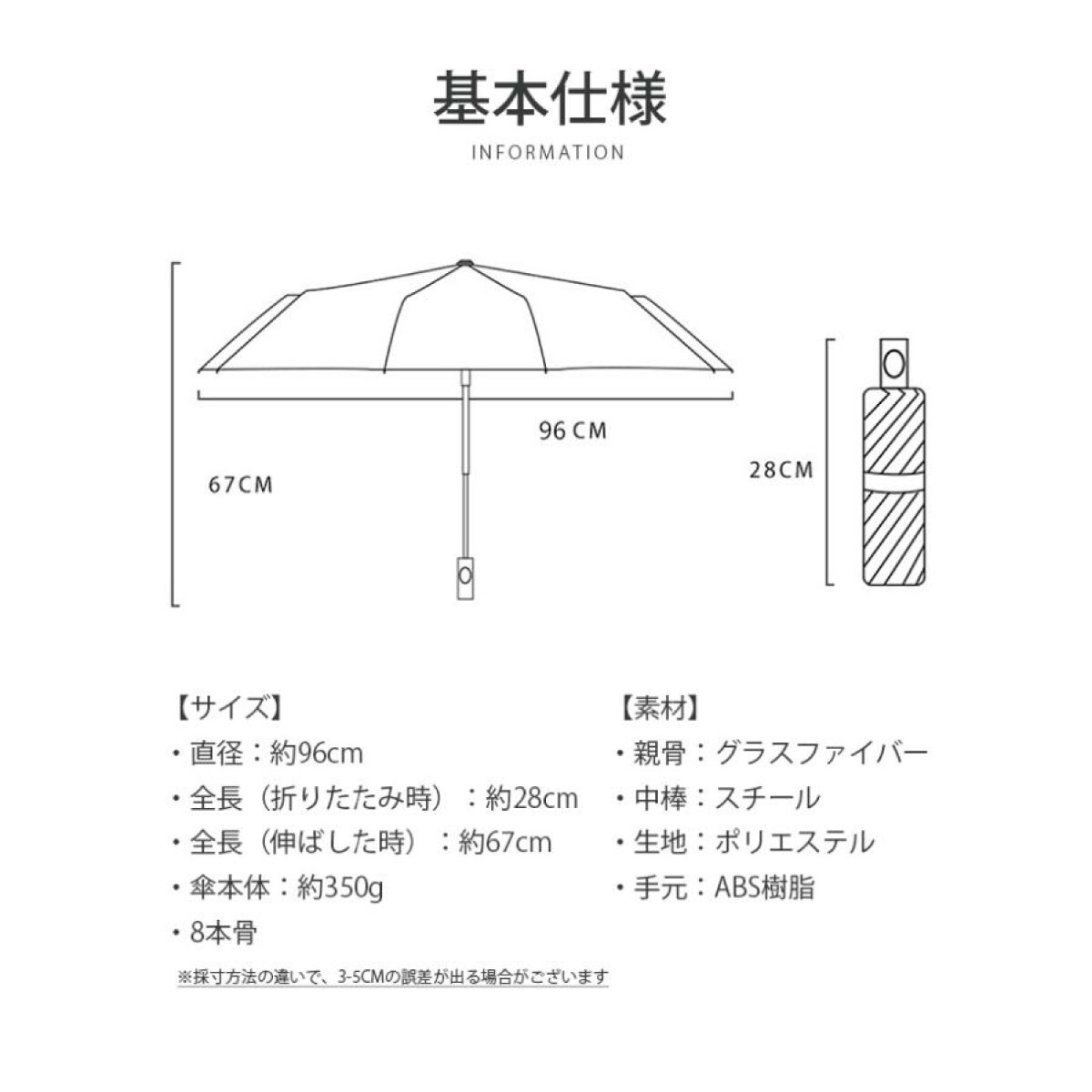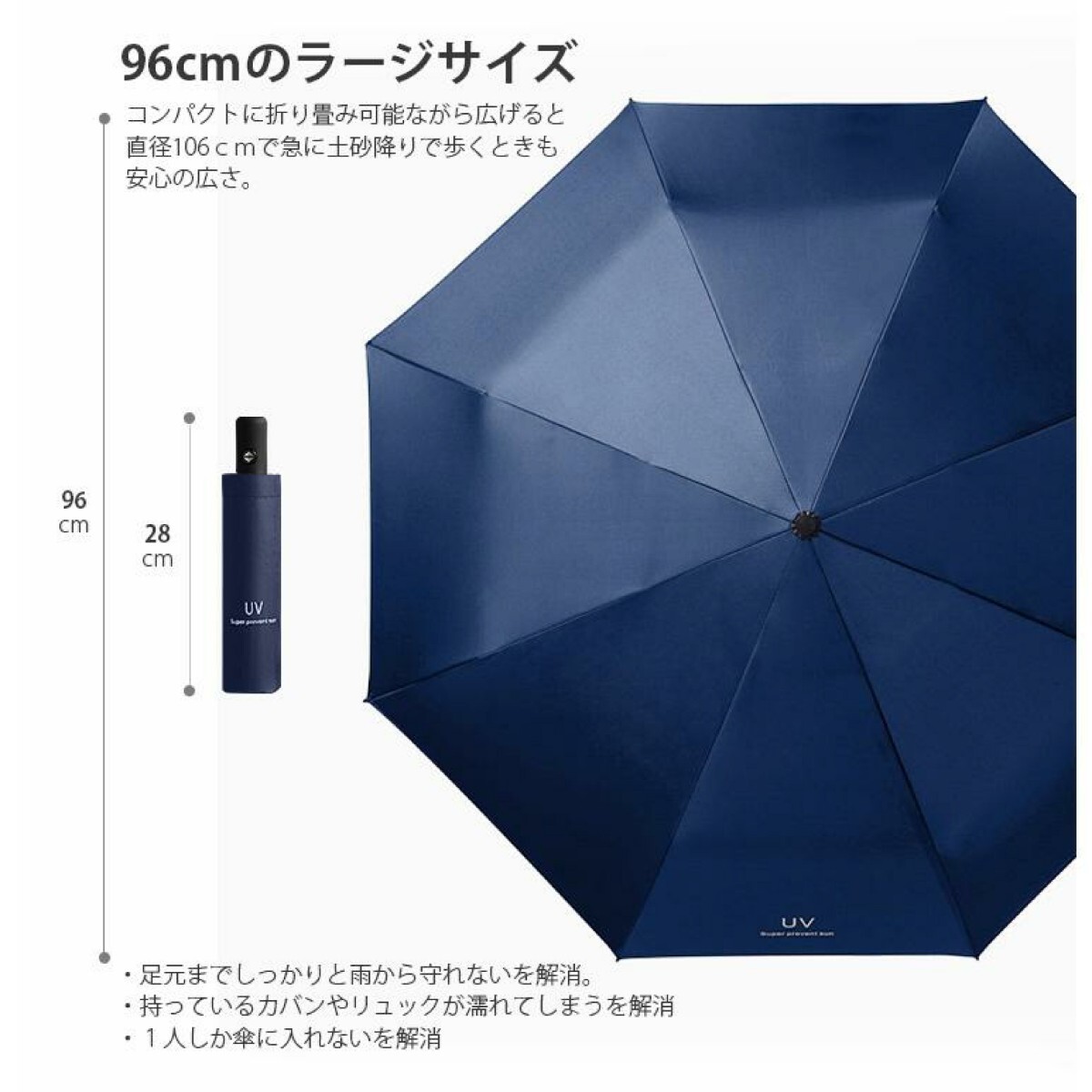 【大きいサイズ&頑丈の折りたたみ傘】 傘の直径が96cmに達しております。大雨強風の日も安心の大きめサイズ!しかもシンプルなデザインを採用し、ビジネスカジュアルにも便利に合わせることができます。 また、コーティングを噴霧しているので錆びることは心配がありません。