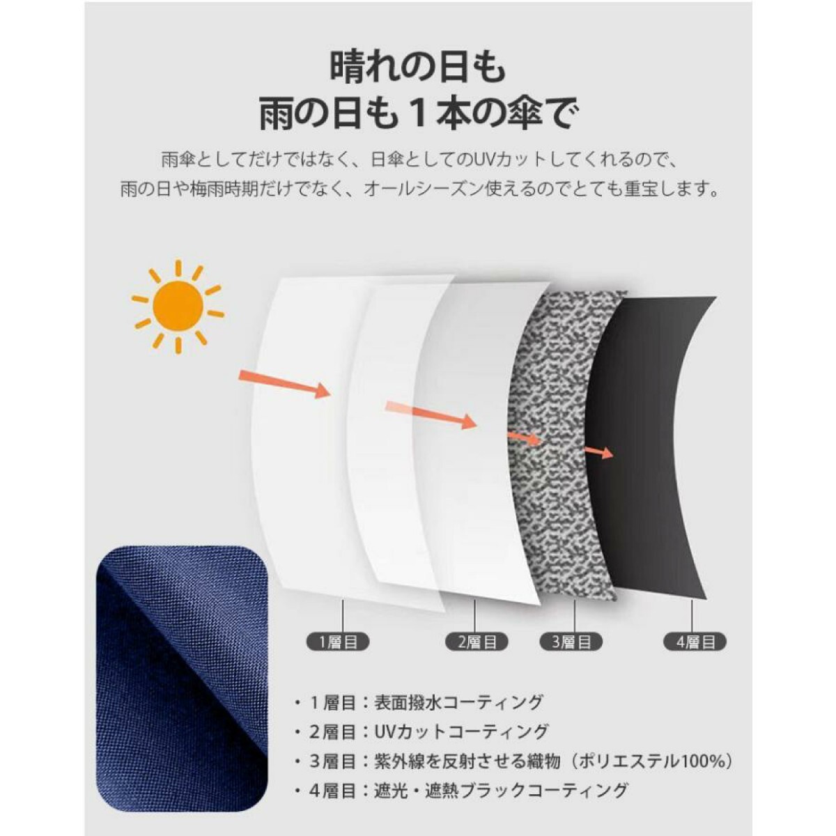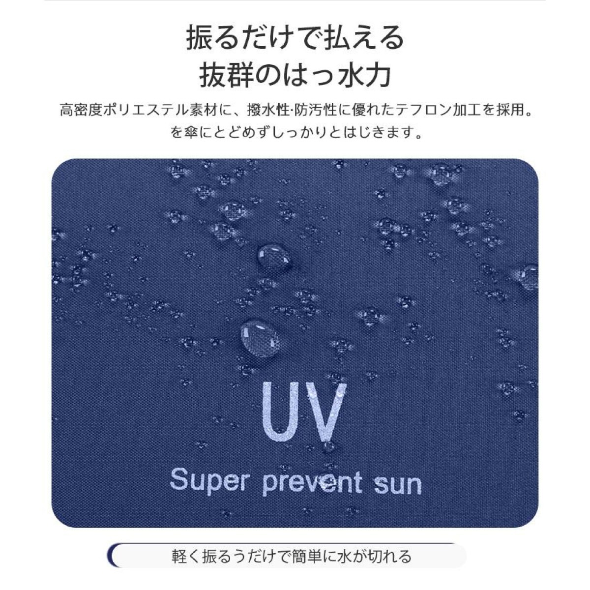 【超撥水性・晴雨兼用傘】 傘布は高密度のポリエステル素材採用、傘布は皺が生じにくく、軽く振るだけで、水滴が簡単に振り払えて、豪雨の中でも体が濡れることはありません。雨の日だけでなく、内側の遮熱コーティングにより、日差しの強い日にも光を通さず紫外線をカットしてくれるので、暑い季節の通勤に日傘として活用可能。天候にかかわらず、一年中活躍する晴雨兼用の折り畳み傘です。