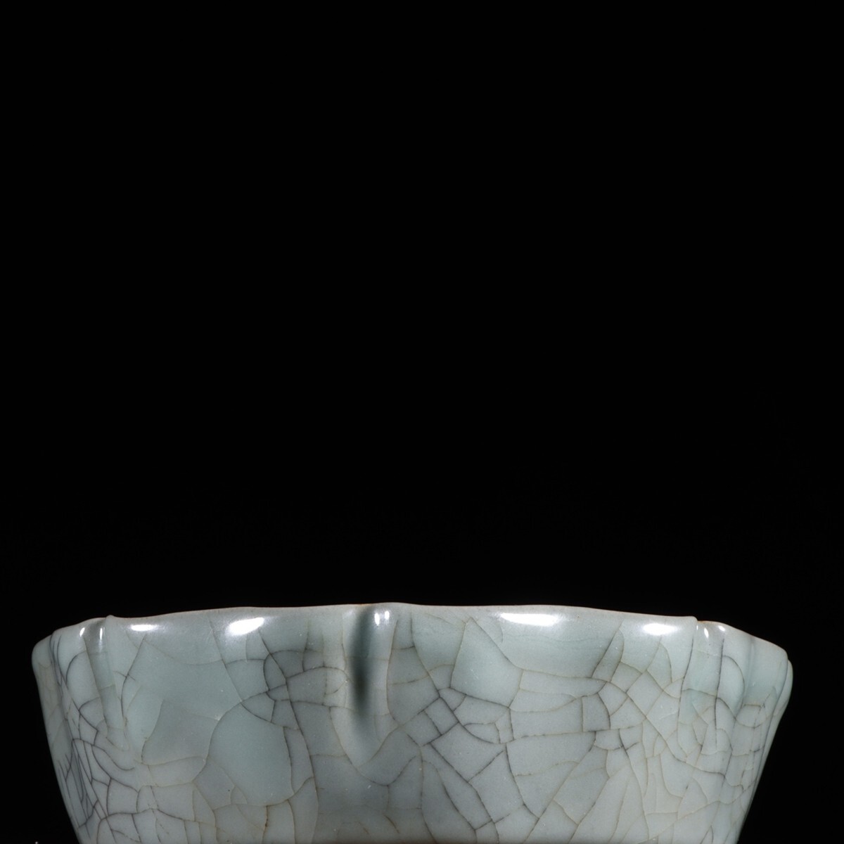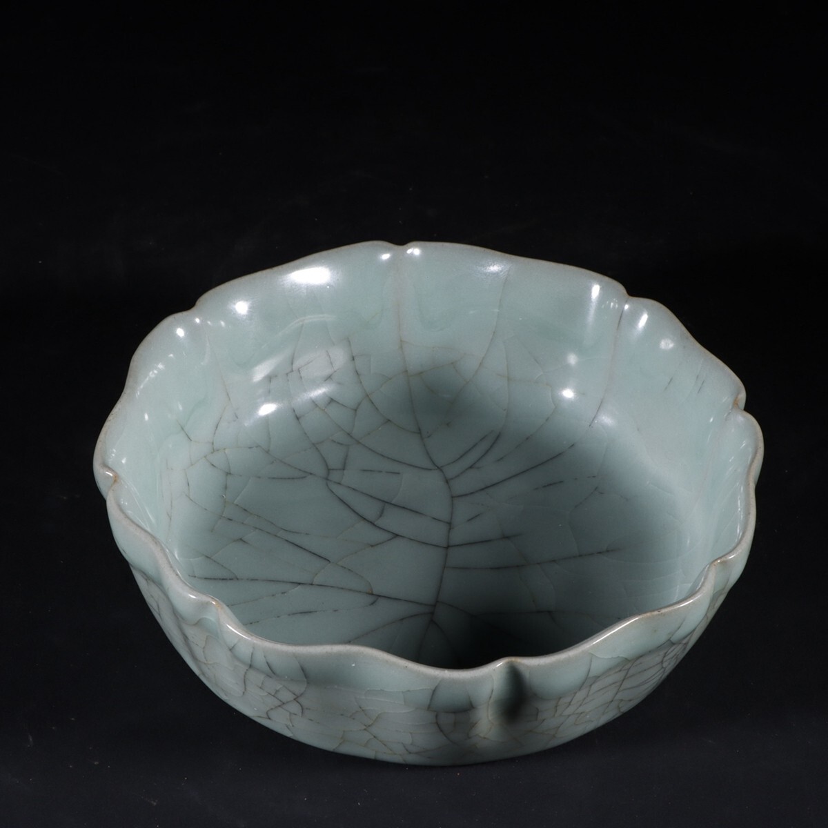 「宋 官窯 陶磁器 粉青釉 花口洗」染付 置物 擺件 古賞物 中国古美術 旧蔵出
