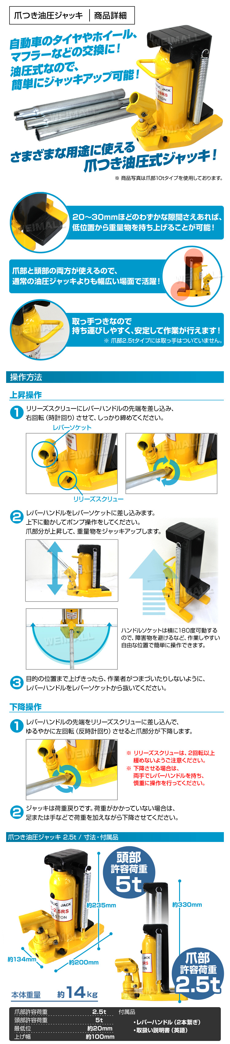 | 油圧式爪付きジャッキ 2.5トン★ヘッド部5トン |