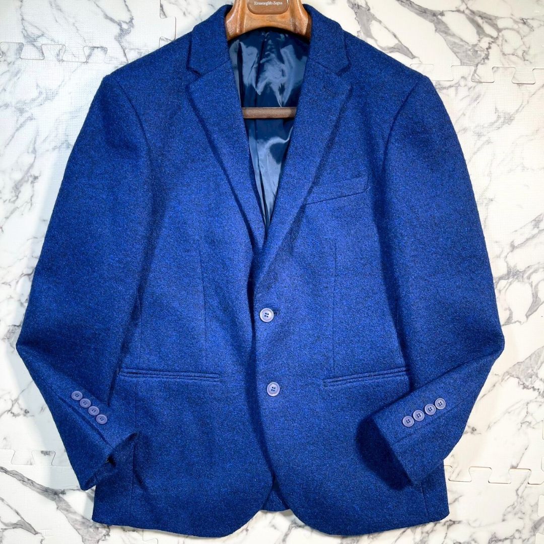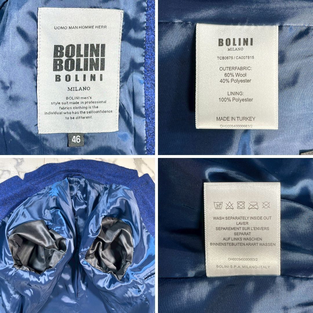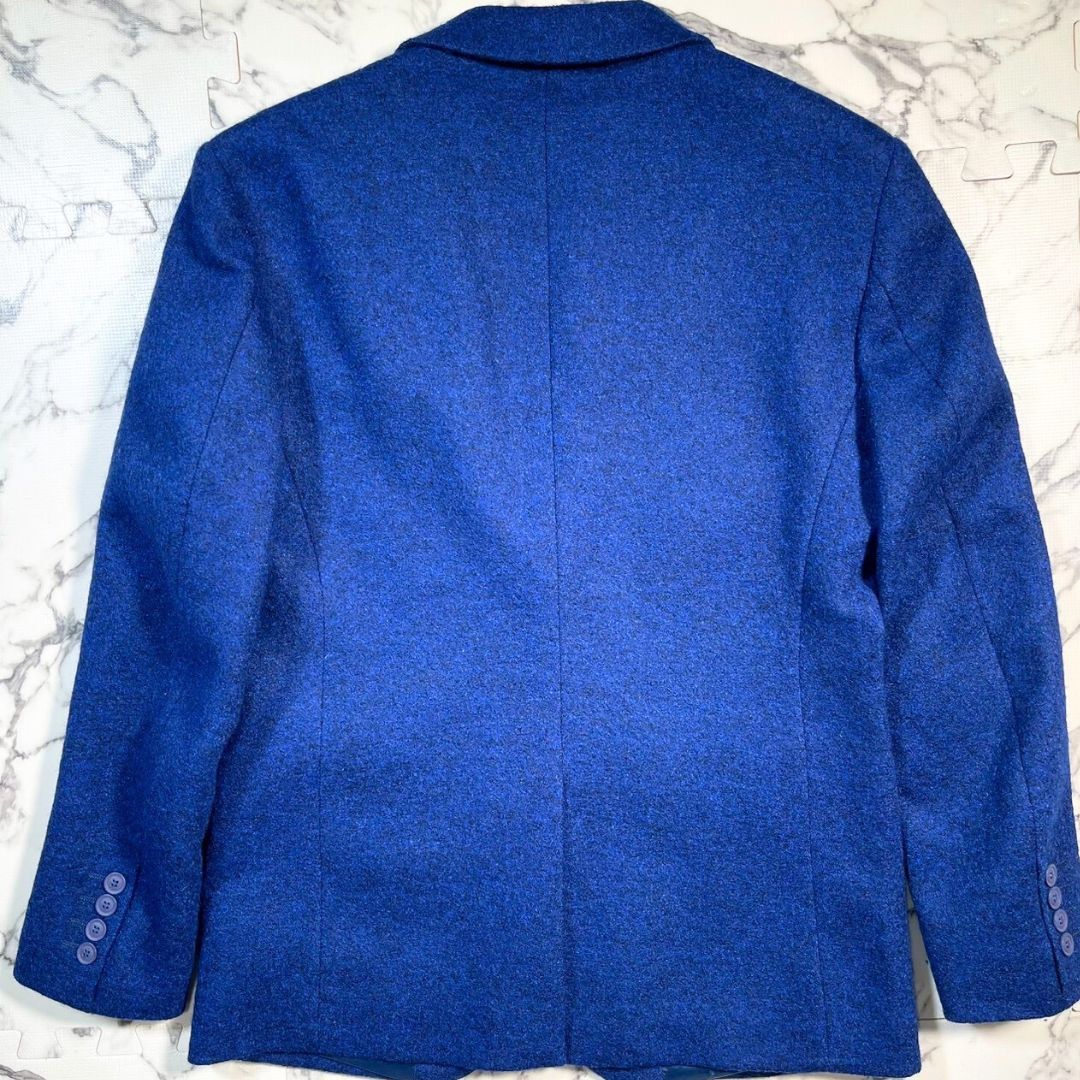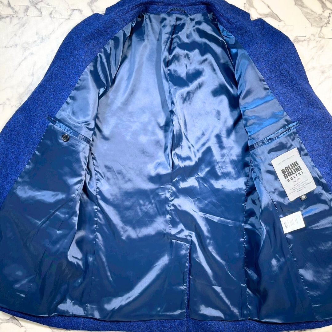 未使用級/縮絨ウール(L位)●BOLINI テーラード ジャケット メランジウール 羊毛 ブレザー ブルー 青 総裏 イタリア アウター 秋冬 スーツ