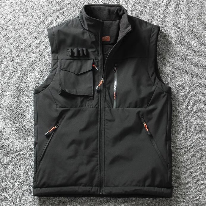 国内未販売 新品 メンズベスト スポーツ アウトドア 撥水生地 多機能ポケット スポーツカジュアルベスト/黒T6170-XL