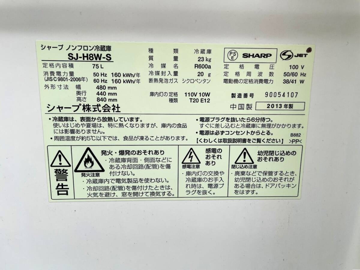 | 製品名 1884-17 シャープ 1ドア家庭用冷蔵庫 SJ-H8W 2015年製 100V W480xD440xH840 店舗用品 中古 厨房 |