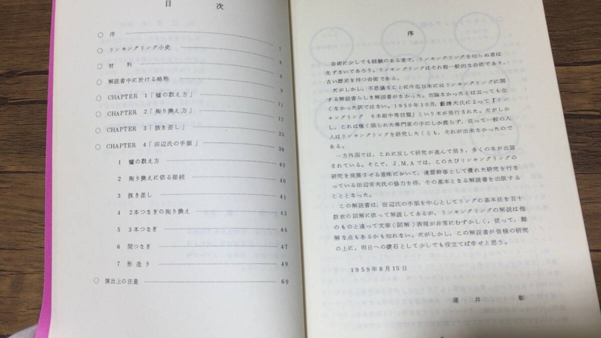 E【奇術関連13】『田辺常夫氏の手順を中心とする リンキングリング』●解説 蓮井彰●全78P●検)シルクコインロープクロースアップマジック