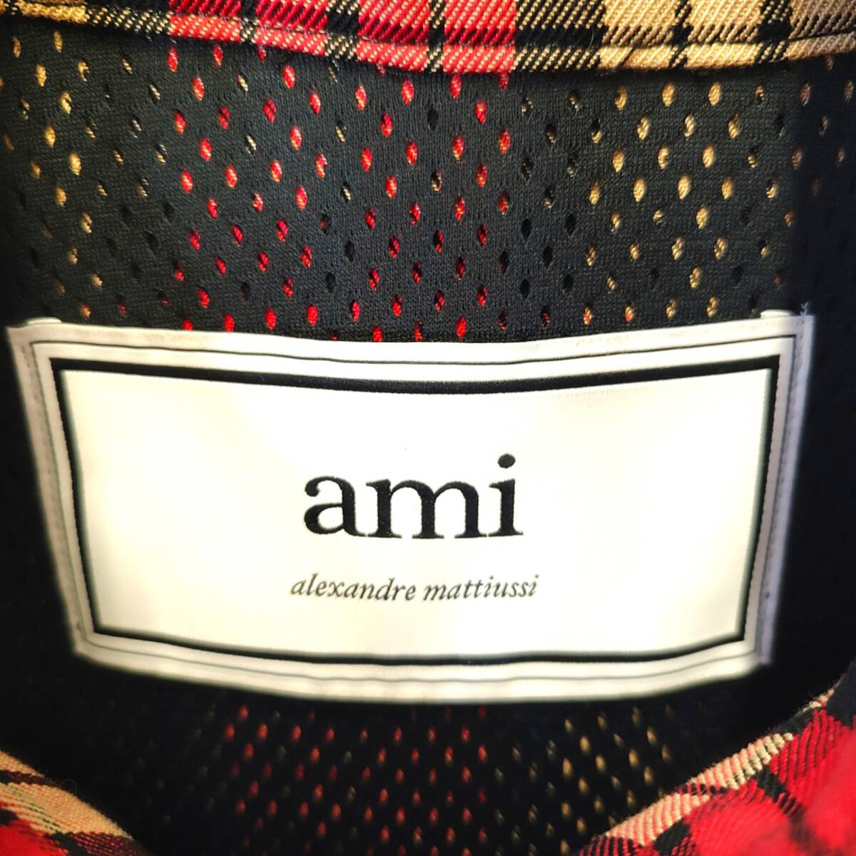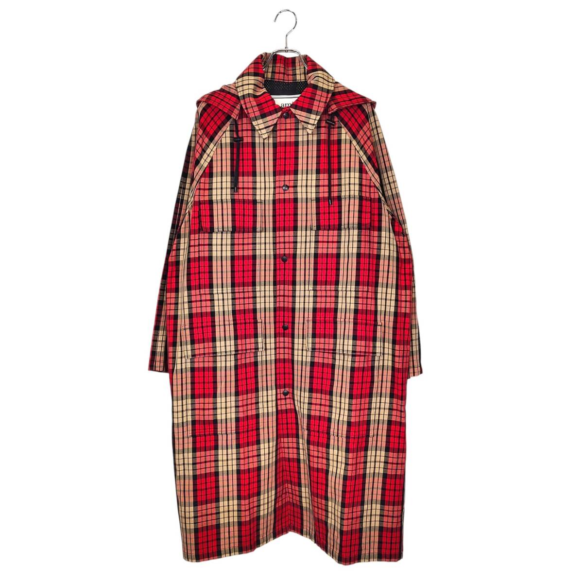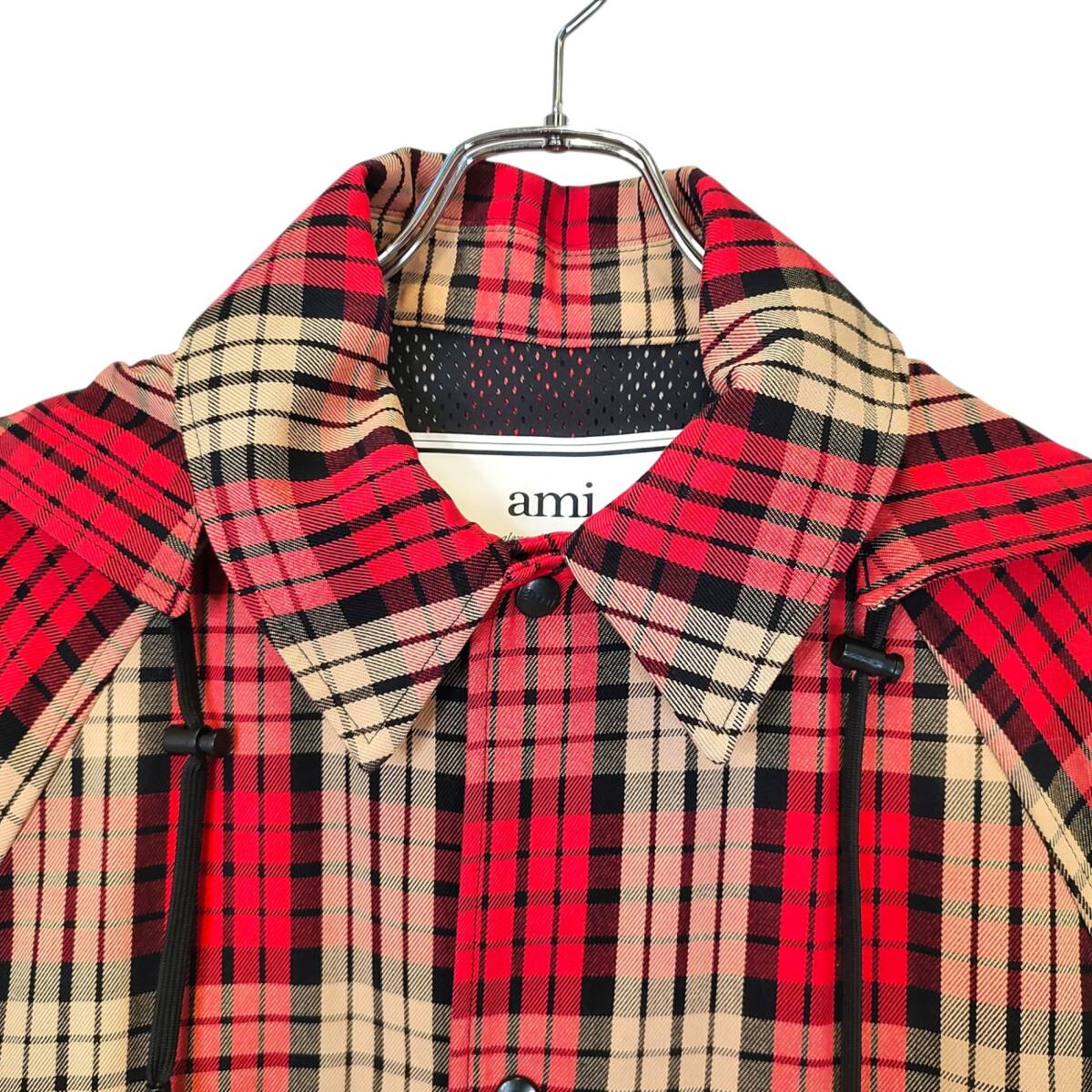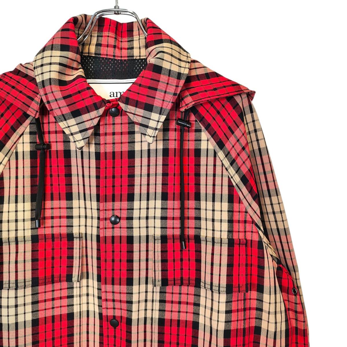 AMI PARIS アミ パリス チェック パーカー ステンカラー コート H170W104.211 S レッド/ベージュ メンズ