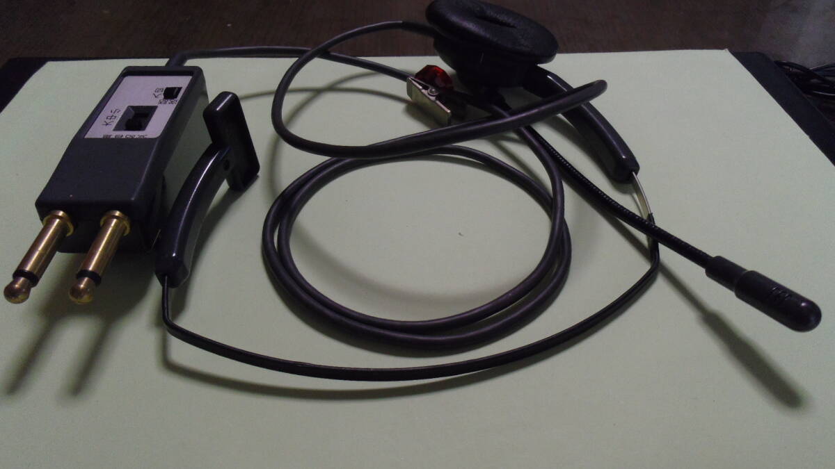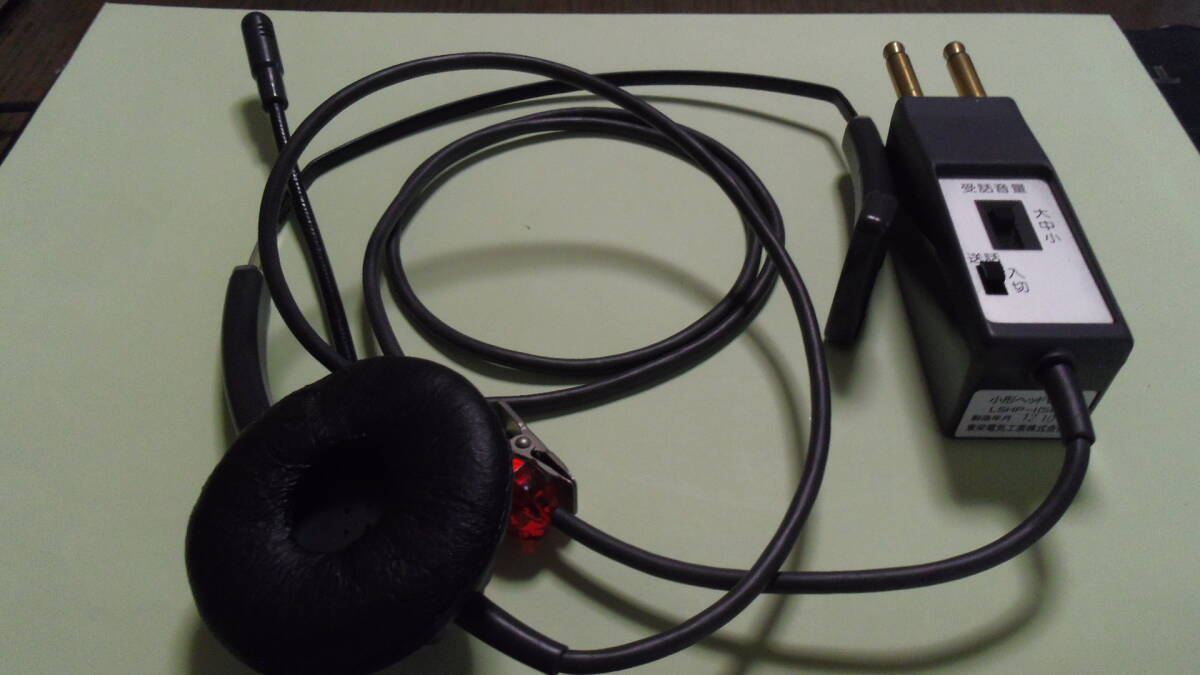 小型ヘッドセット(片耳オーバーヘッド電話受付台専用) LSHP-1(SU)双頭プラグ、ミュートスイッチ付 中古品