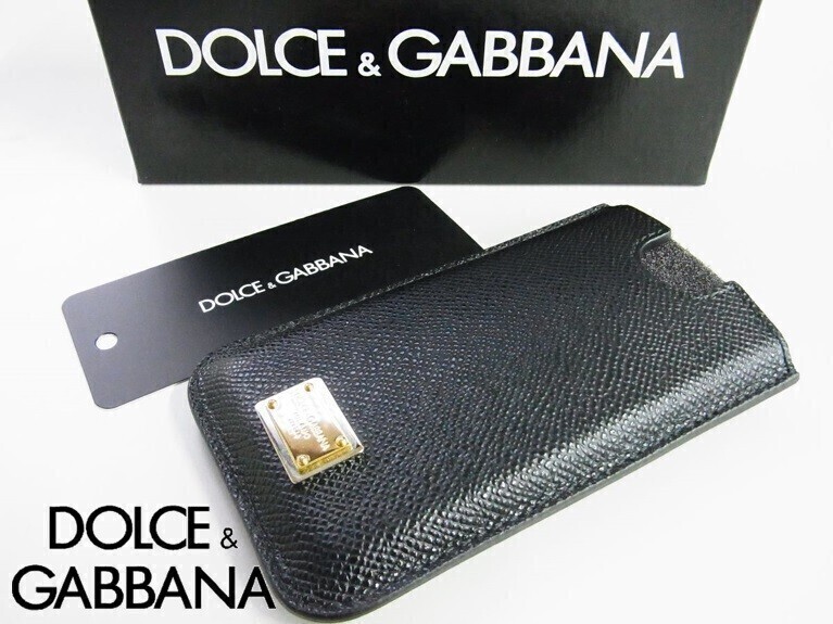 廃番★ DOLCE&GABBANA ドルチェ&ガッバーナ★ iPhone4.4S用レザーケース★ブラック黒【本物保証】ドルガバ★正規品★ロゴプレート付