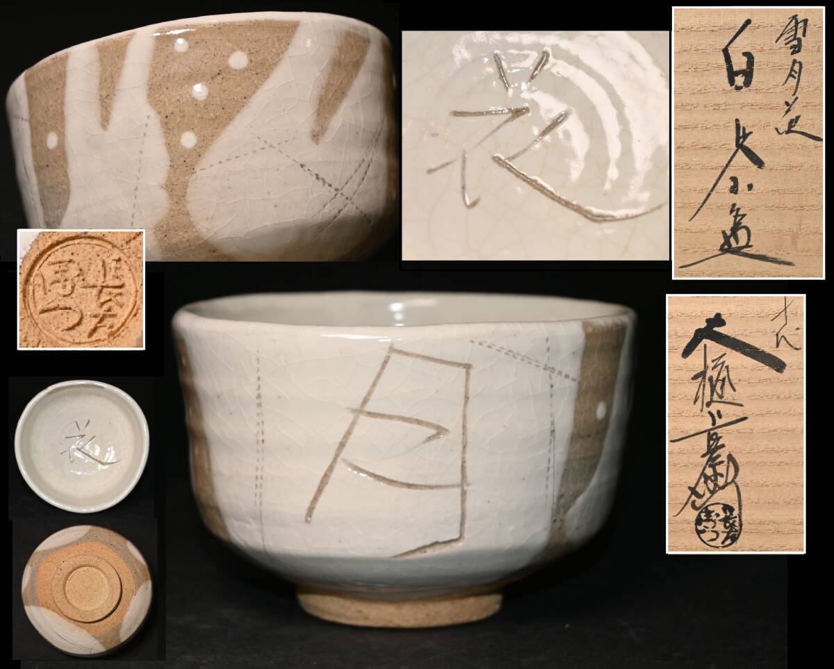 十代大樋長左衛門(年朗)造『雪月花 白茶碗』雪は文字ではなく釉薬で表現 共箱・共布・栞 現代アート 茶道具 抹茶茶碗 石川県金沢市 真作 | ||||||