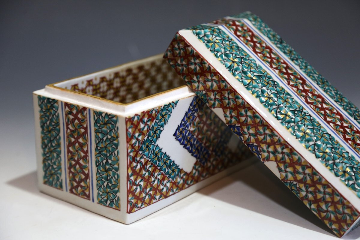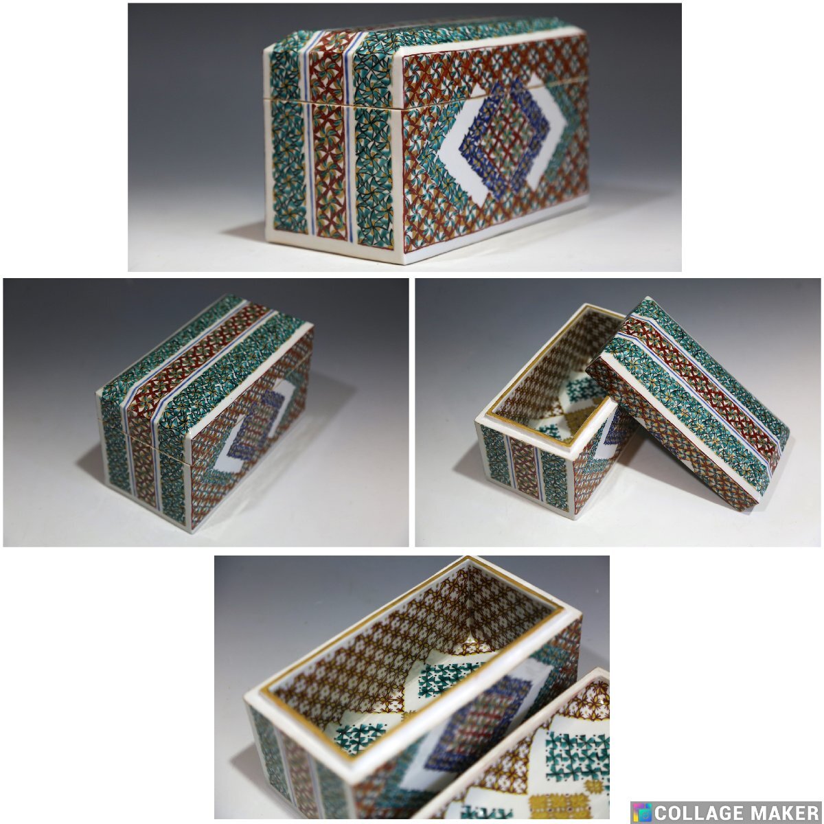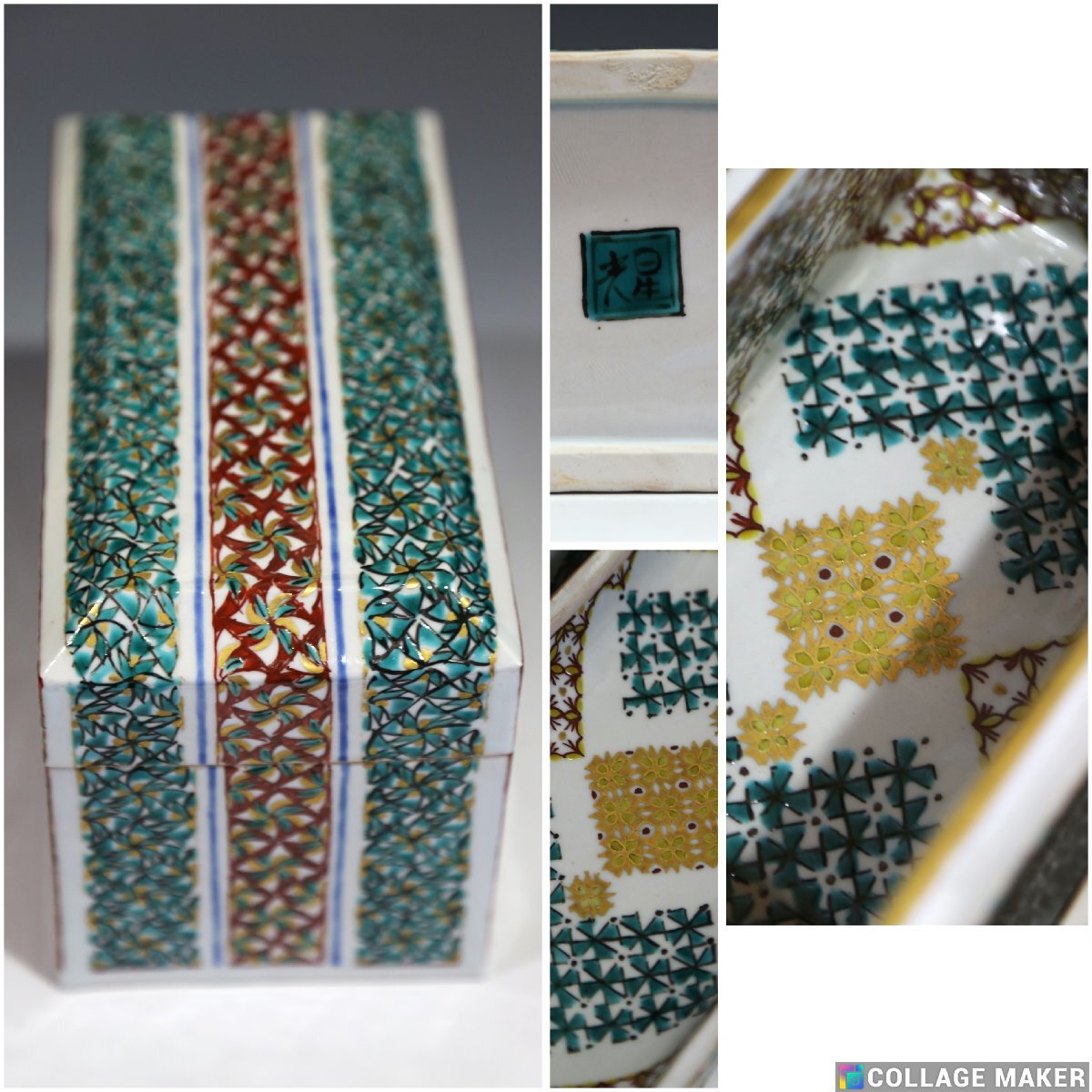 ★★★ 九谷焼 北出星光 色絵 金彩 更紗文 陶筥 ★★★ 55