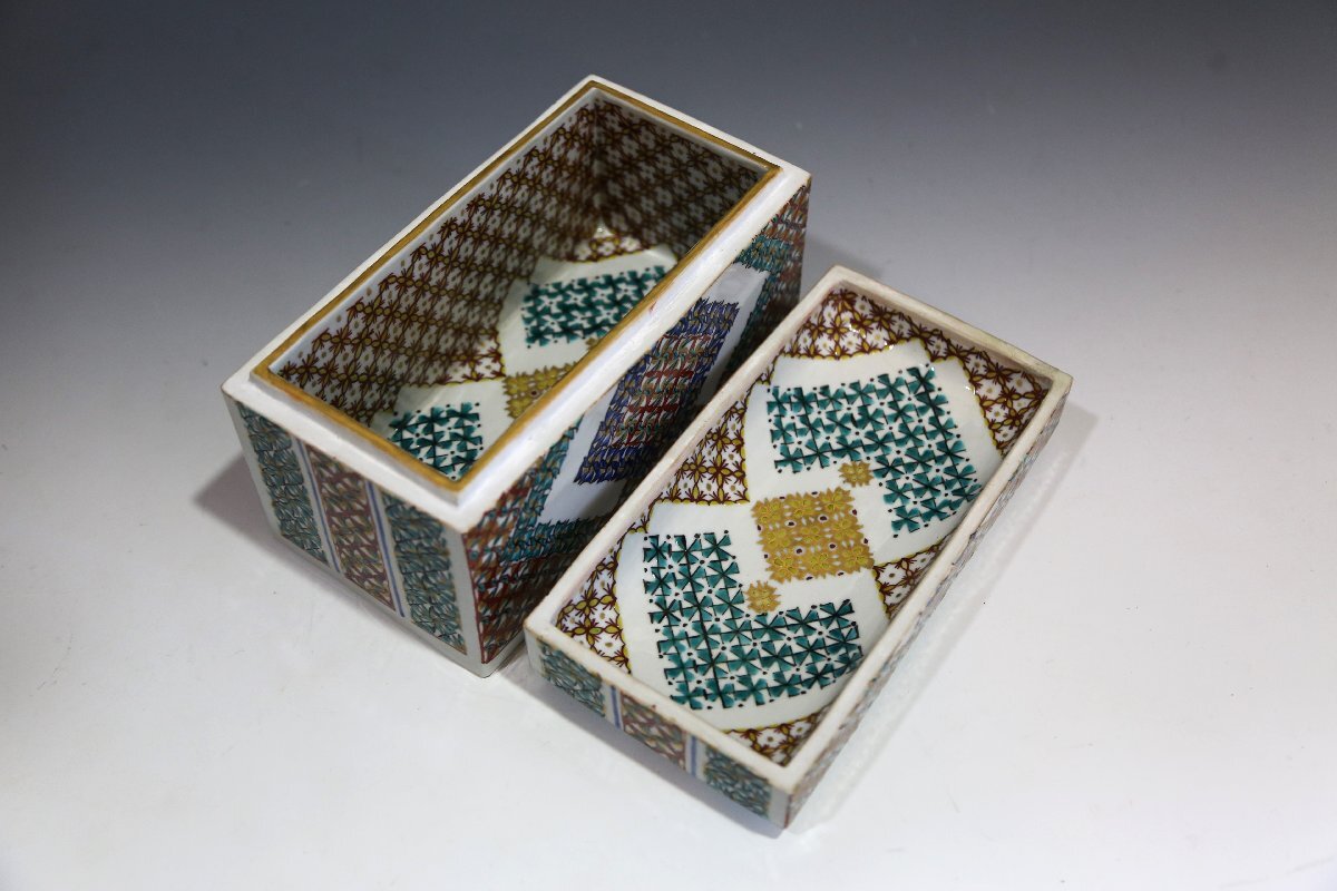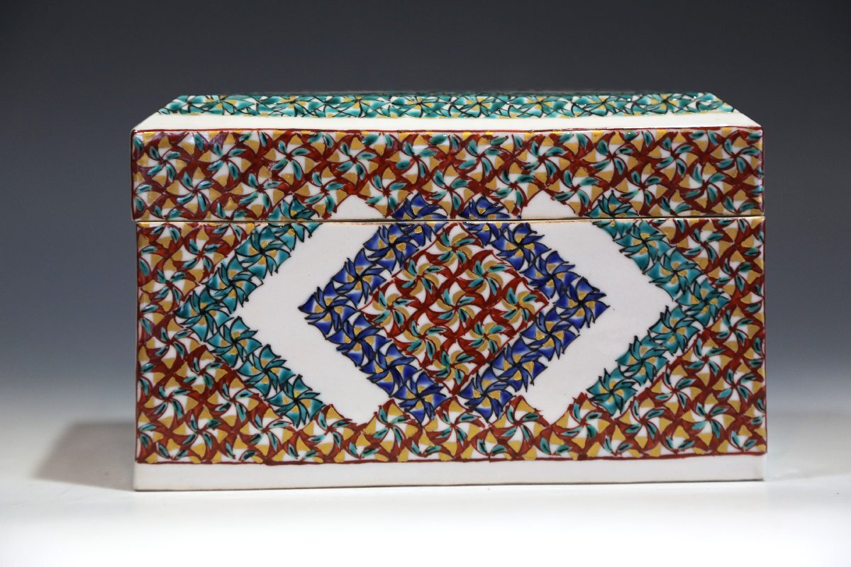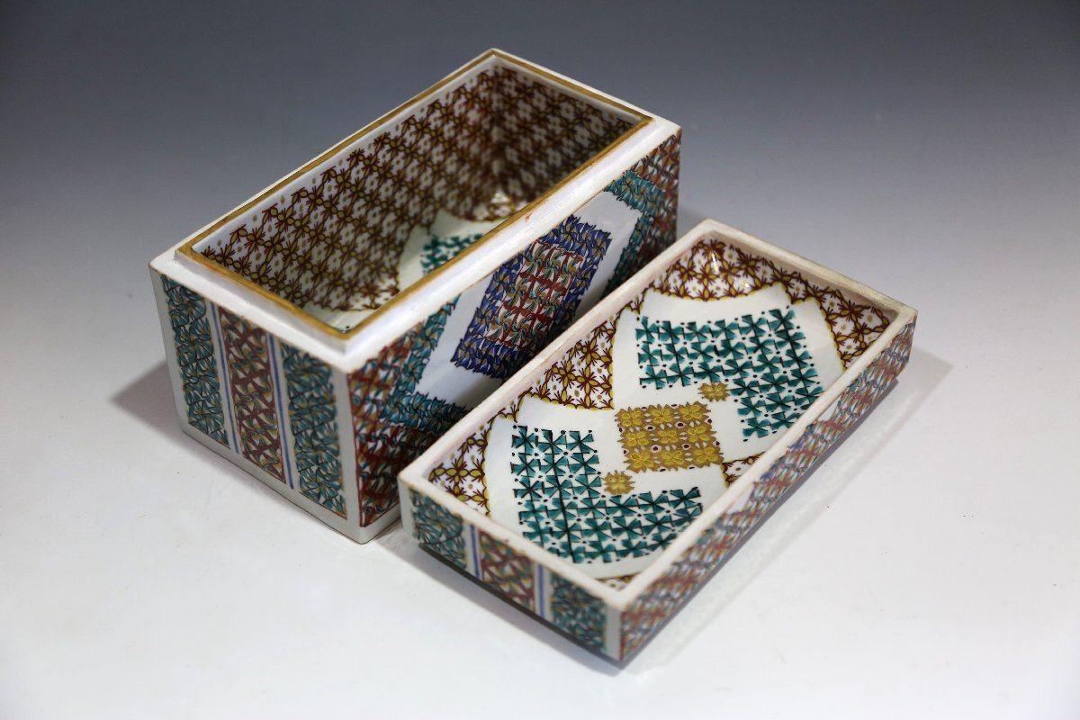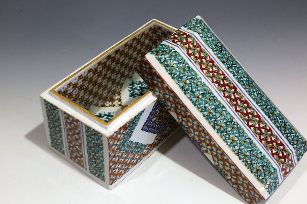 ★★★ 九谷焼 北出星光 色絵 金彩 更紗文 陶筥 ★★★