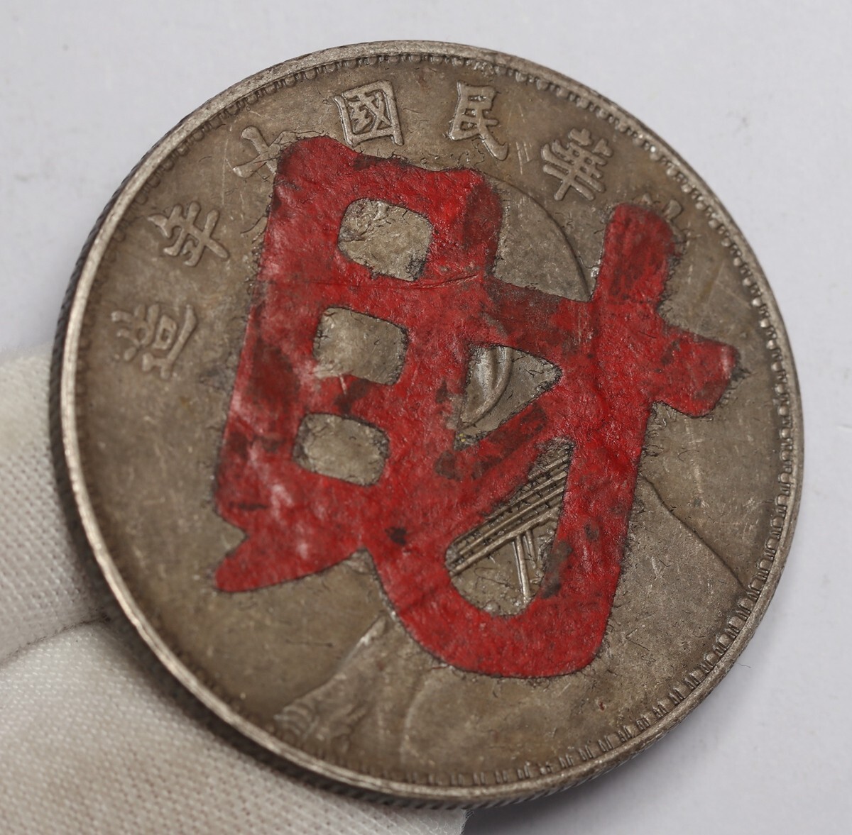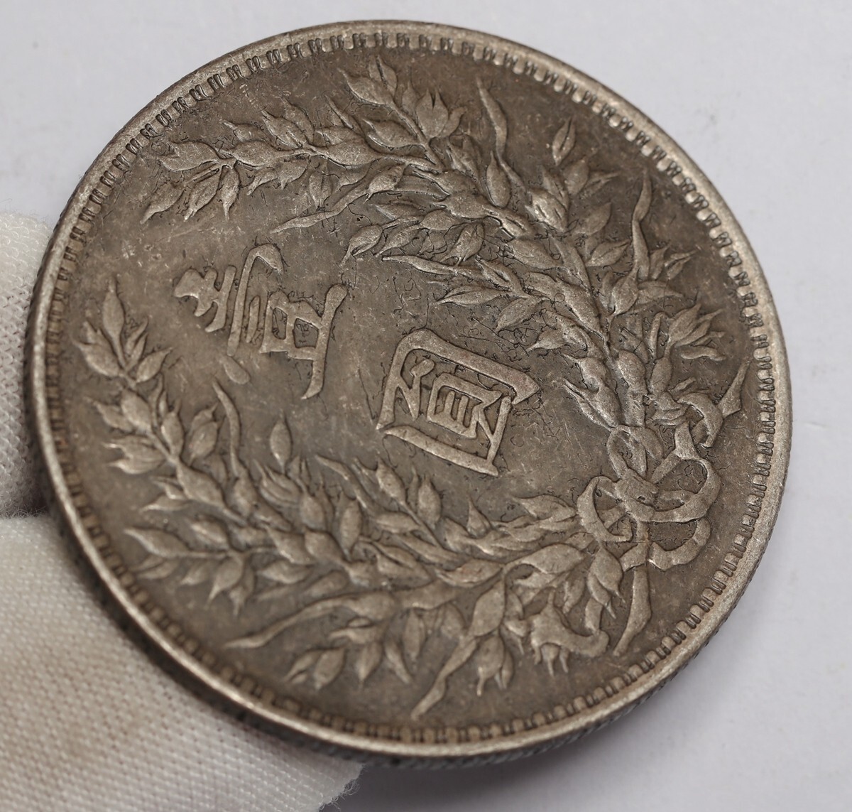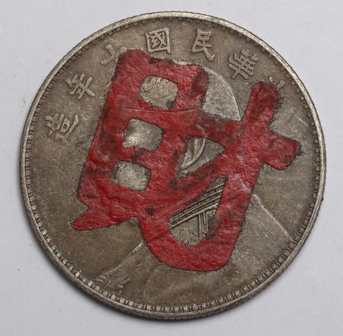 旧家蔵出し 中国古錢 禮錢 財字貼 中華民國十年造 袁世凱 壹圓 銀貨 純銀保證 銀元 銀幣 古美術品 収集家 26.92g 39.3mm
