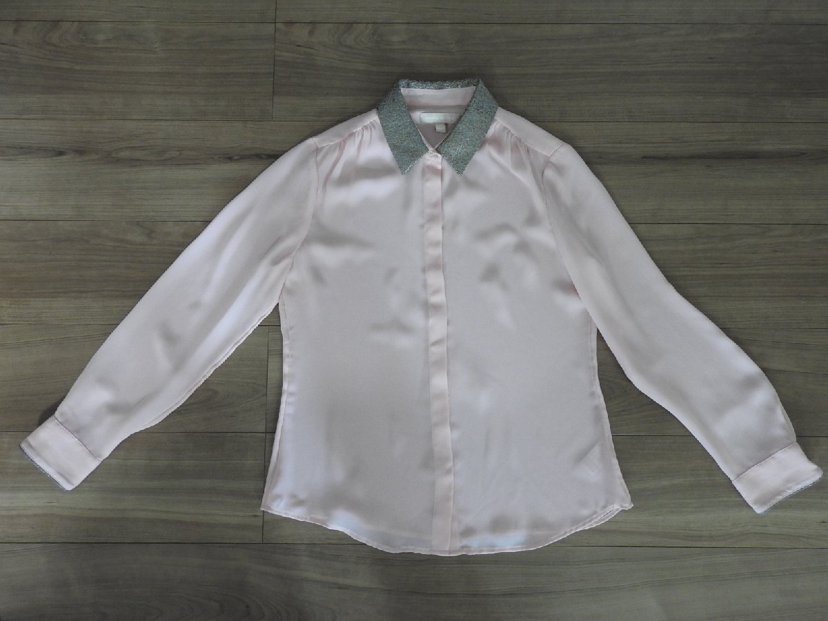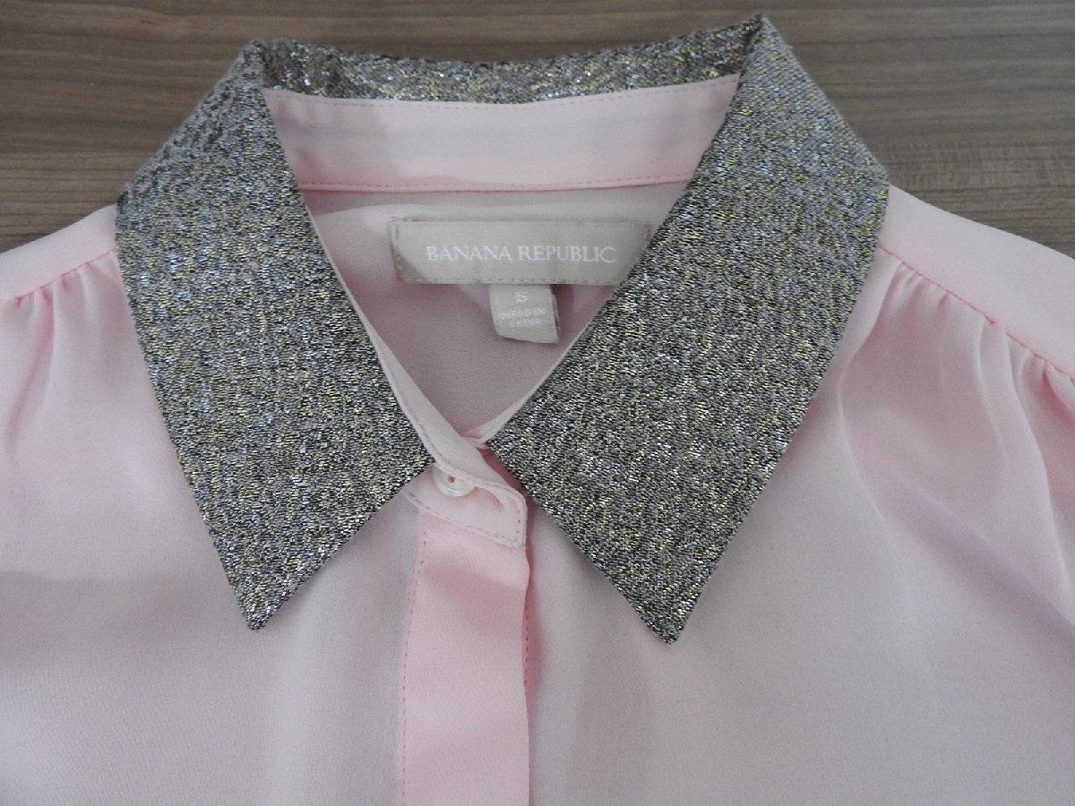 ★★送料無料 BANANA REPUBLIC バナナパブリック 長袖 シャツ ピンク 襟シルバー S レディース