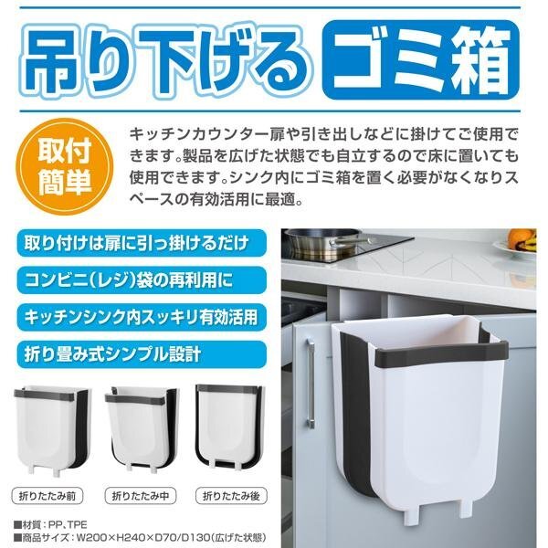ゴミ箱 壁掛けゴミ箱 折りたたみ シンク 引っ掛けるだけ 吊り下げゴミ箱 大口径 ダストボックス 送料無料- 60N◇ 吊下げゴミ箱LTM