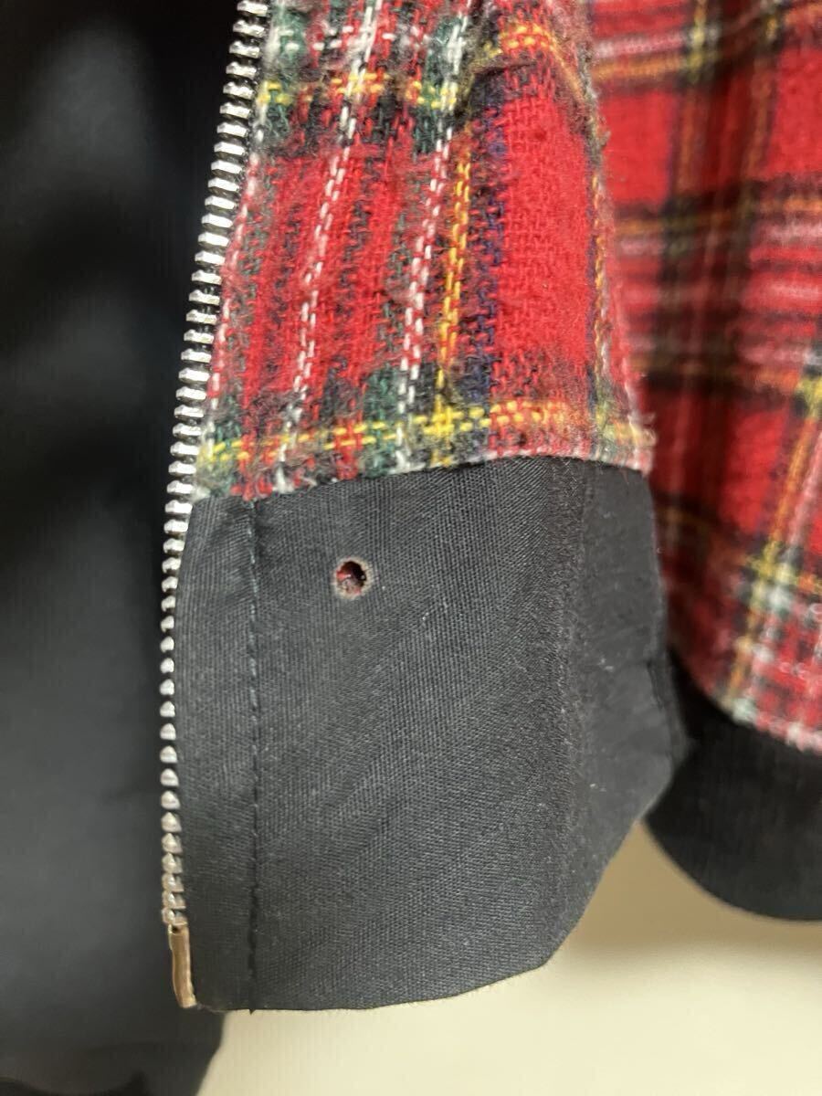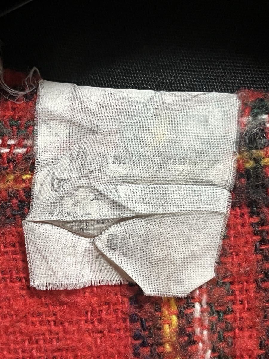 ブランド名 不明・表記サイズ 不明・肩幅 47cm・身幅 58cm・着丈 59cmです。タグの印字が薄くなっていますが、イギリス製である事が確認出来ます。裏面に1ヶ所小穴があります。全体的にはキレイな状態です。