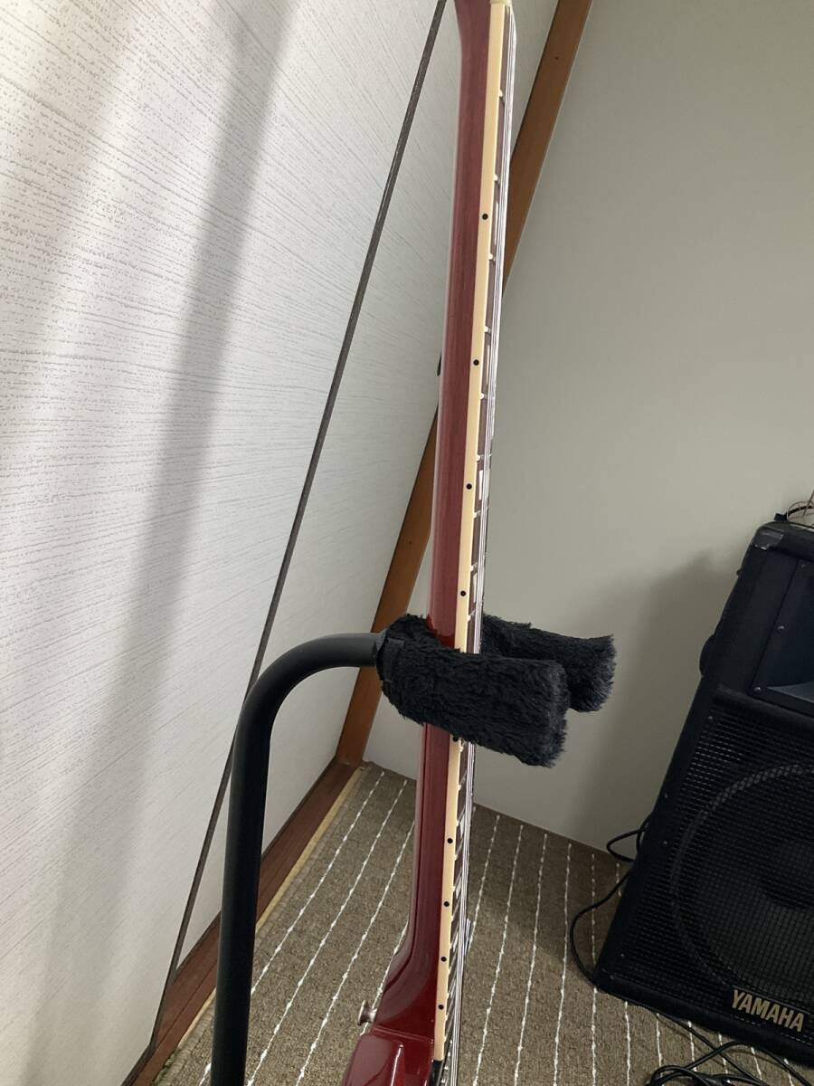 イケベ楽器で各部点検後牛骨のナットに交換しています。
