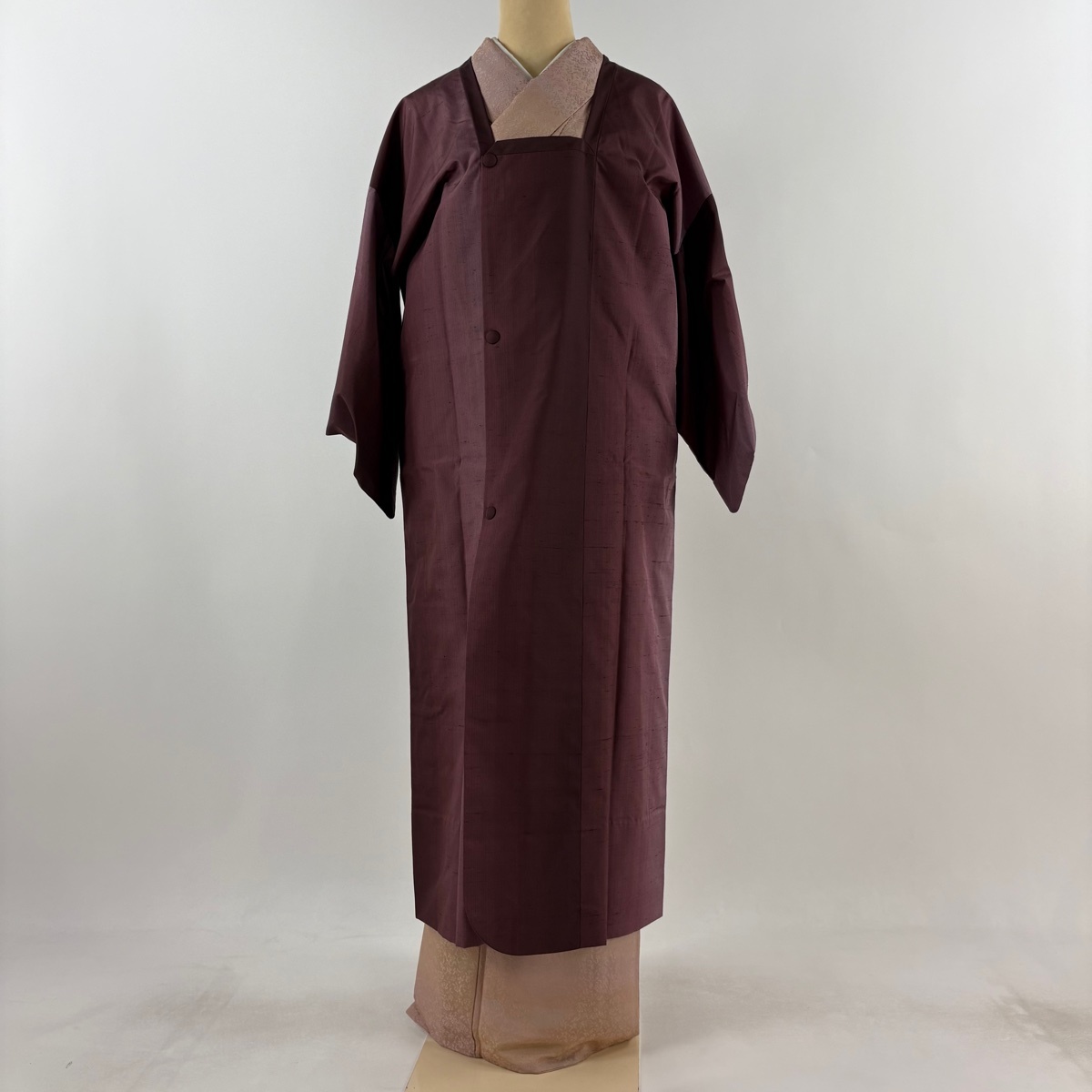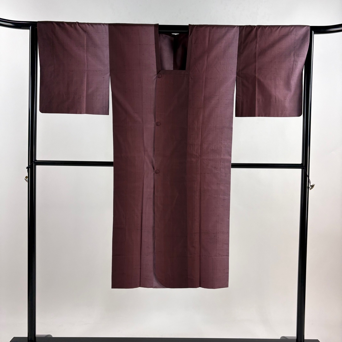 | 道行 美品 名品 紬地 和装コート 角衿 縦ぼかし柄 赤紫 身丈126.5 裄丈65 M 正絹 【中古】 |