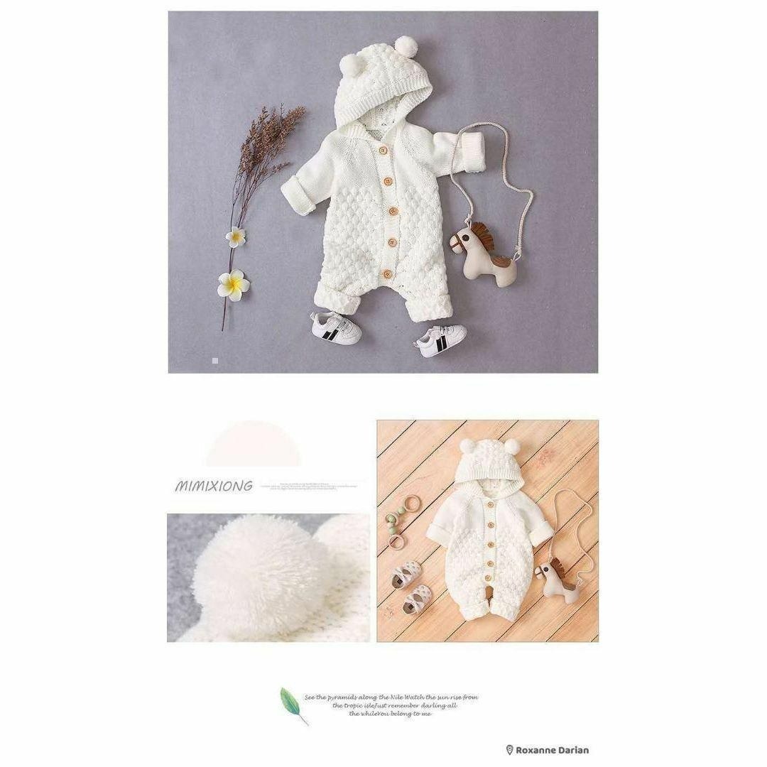 新生児用ニットロンパースが新登場!赤ちゃんに優しい綿100%素材で作られた長袖の可愛い一着です。男の子も女の子も着られるデザインで、赤ちゃんのお肌を守りながらお洒落も叶えます。