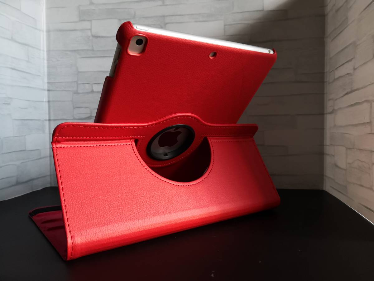 iPad 9世代/8世代/7世代 10.2インチ 共用 レッド レザーケース 360度回転,スタンド機能, 自動スリープ機能付