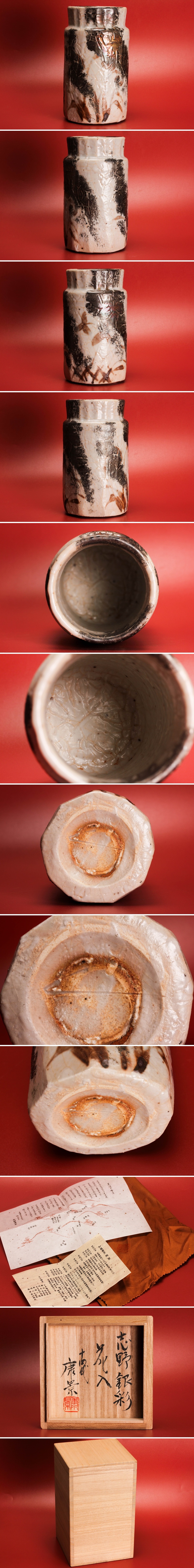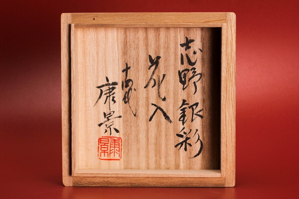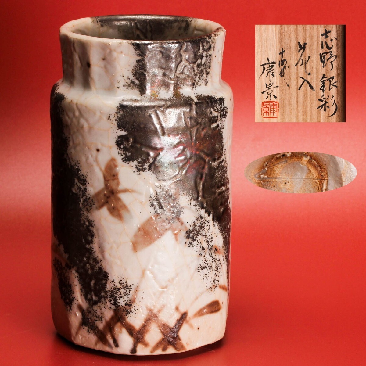 十四代 加藤康景 志野銀彩花入 共箱 共布 栞 本物保証