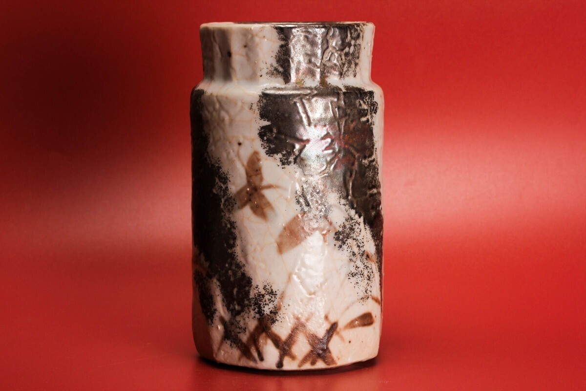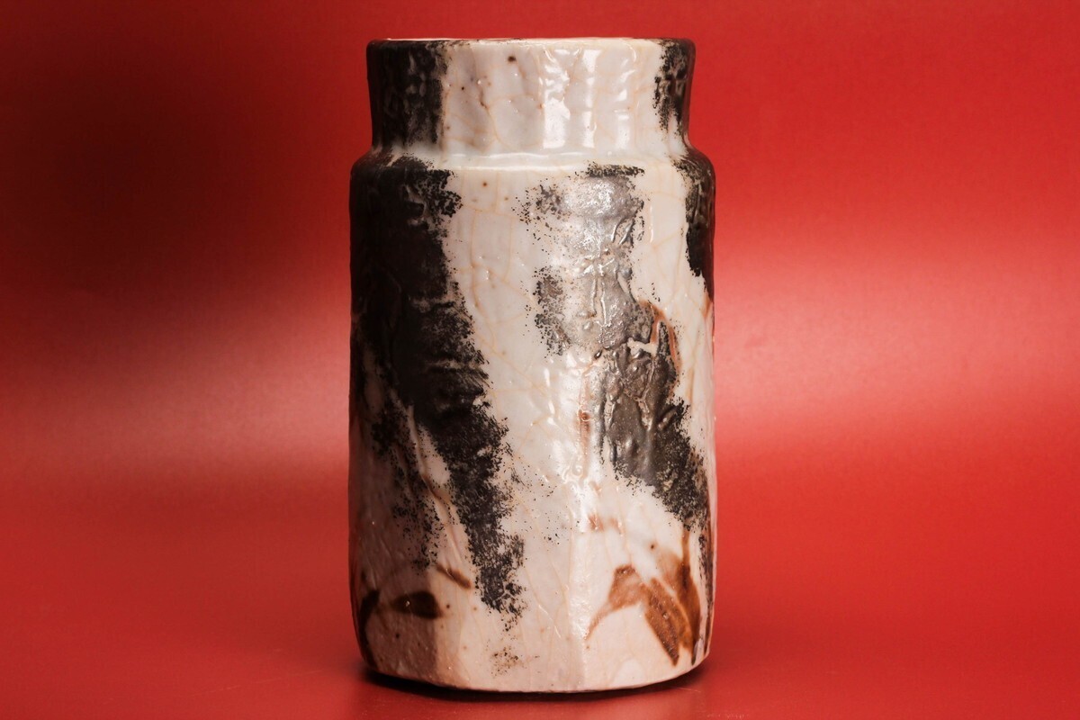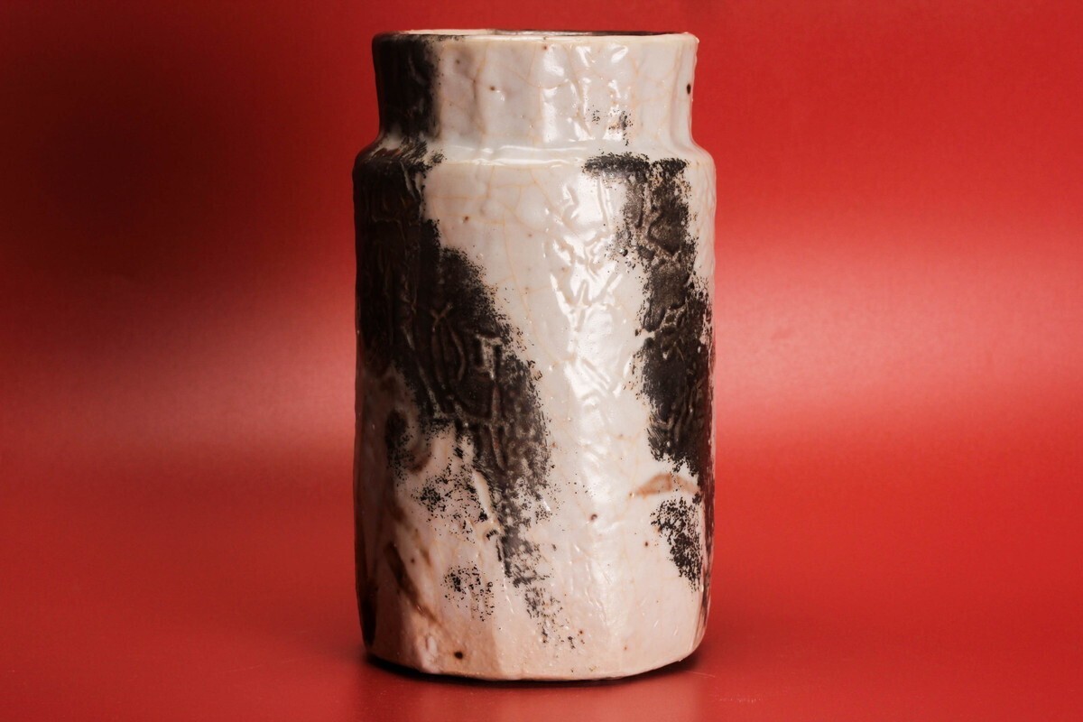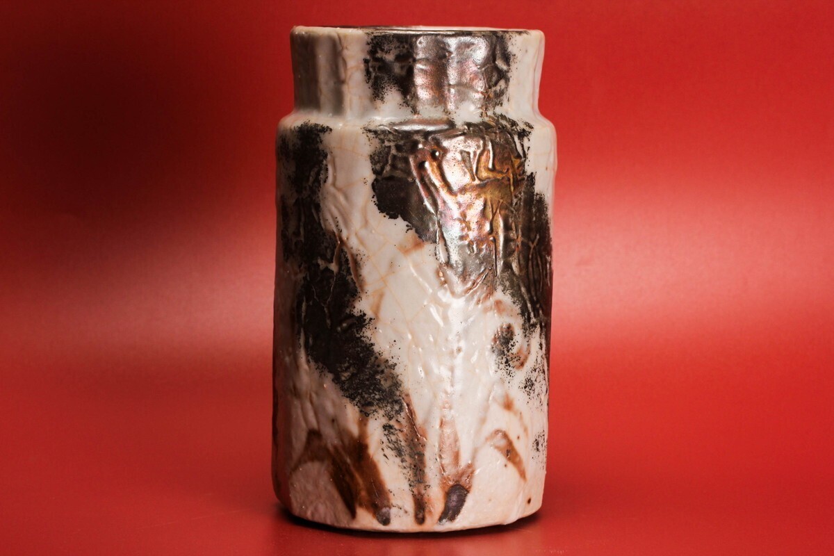 十四代 加藤康景 志野銀彩花入 共箱 共布 栞 本物保証
