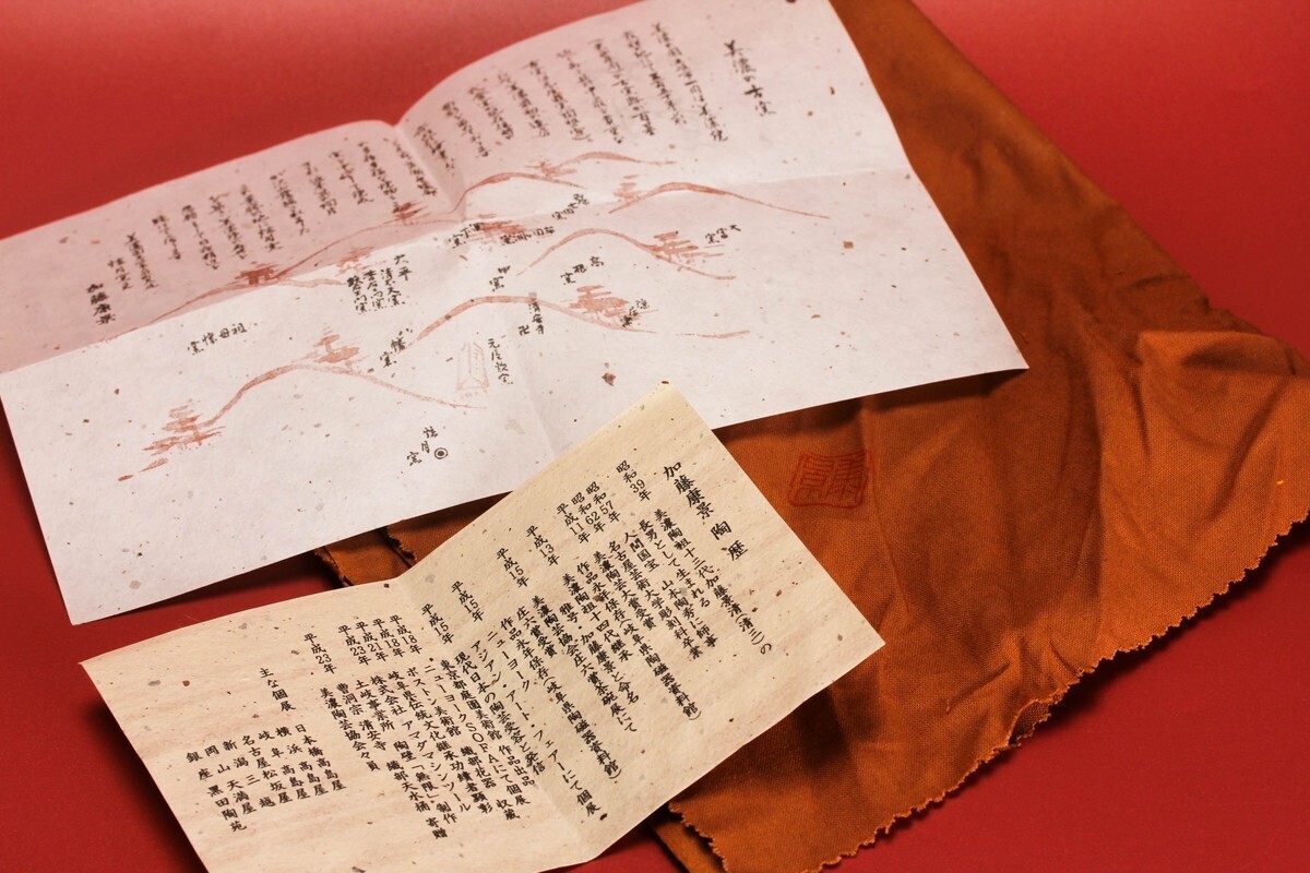 稀に他の作品名・作家名が書き付けられた木箱をお付けしております。誤認防止のため箱書き部分の画像を掲載しない場合もございます。