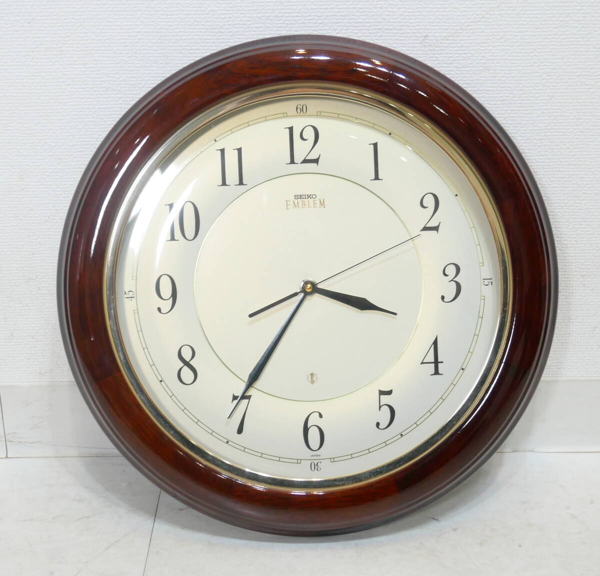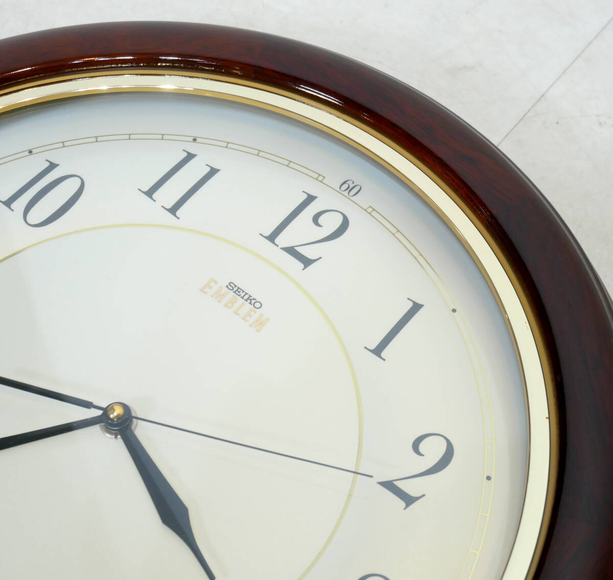 | ▲(R711-H16) 動作品 SEIKO セイコー EMBLEM エンブレム HS344B 木製枠 (約)33㎝×33㎝ 掛時計 | ||