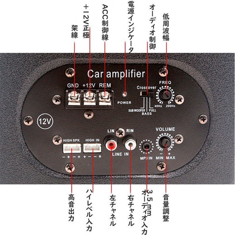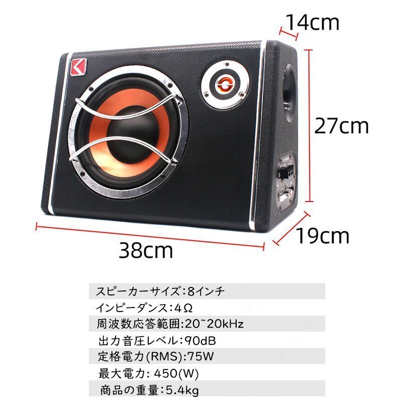 車用 低音スピーカー サブウーファー 超薄型アンダーシート 8インチ 12V 480W ケーブルキット コンパクト軽量 小型 単品 383