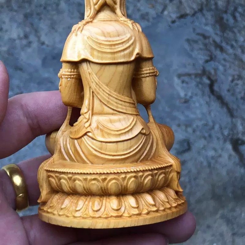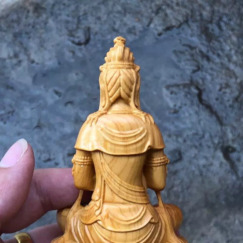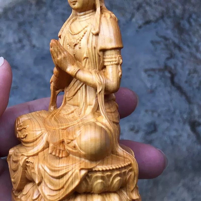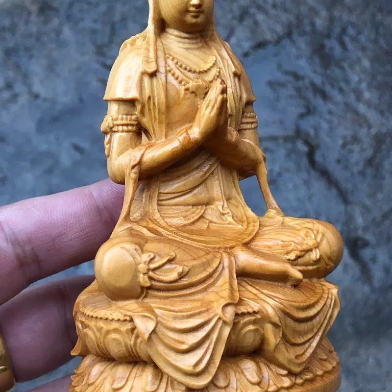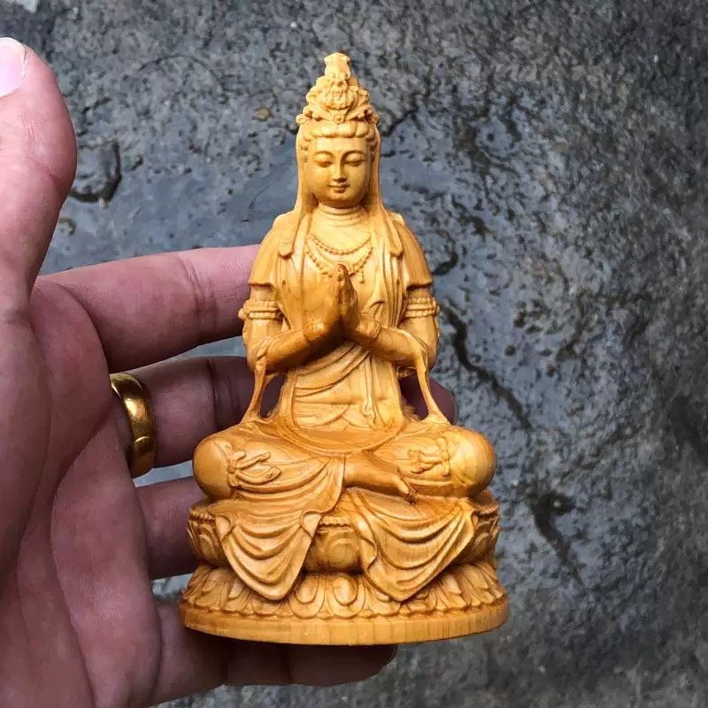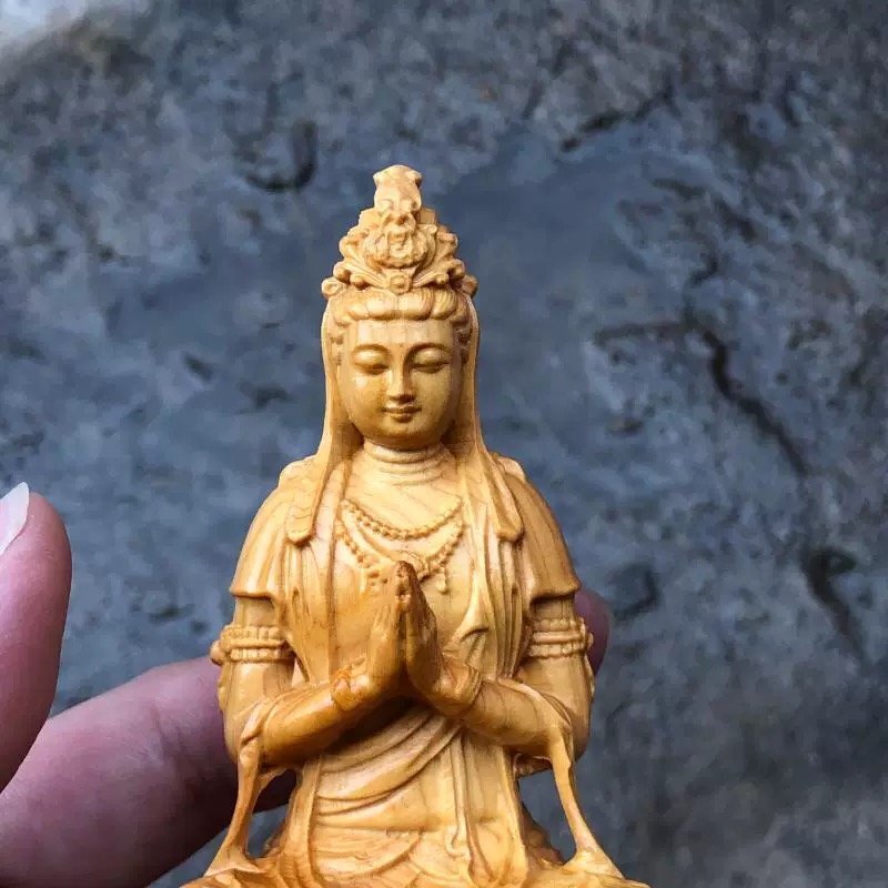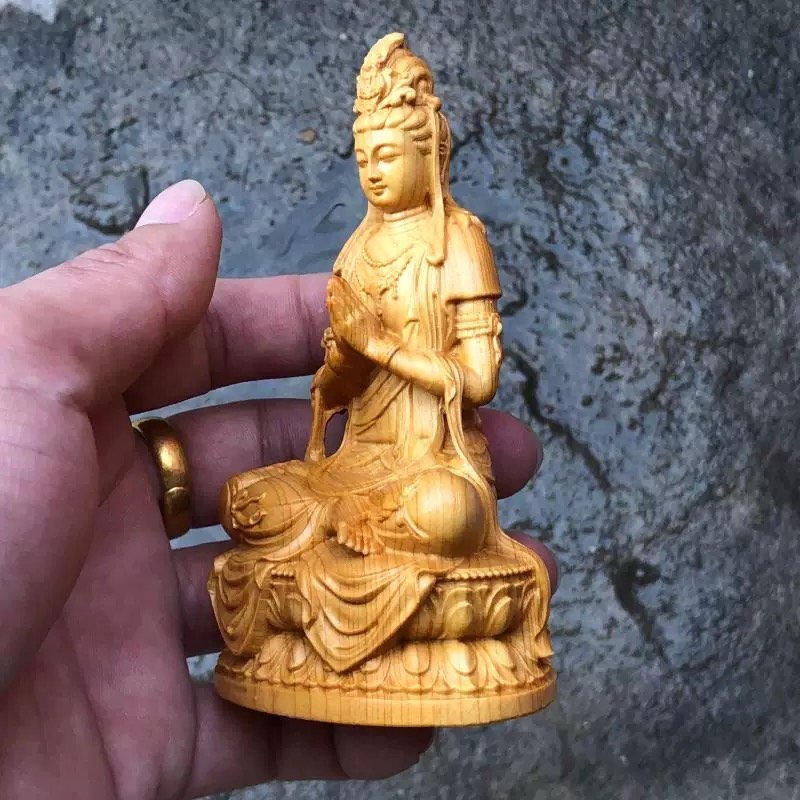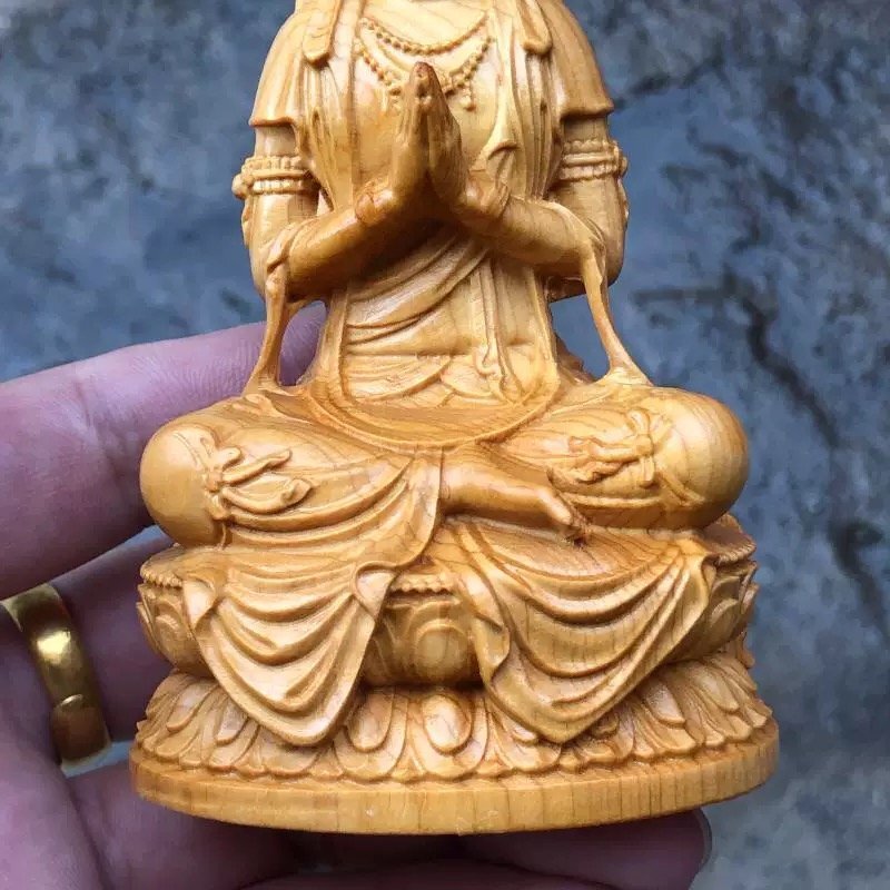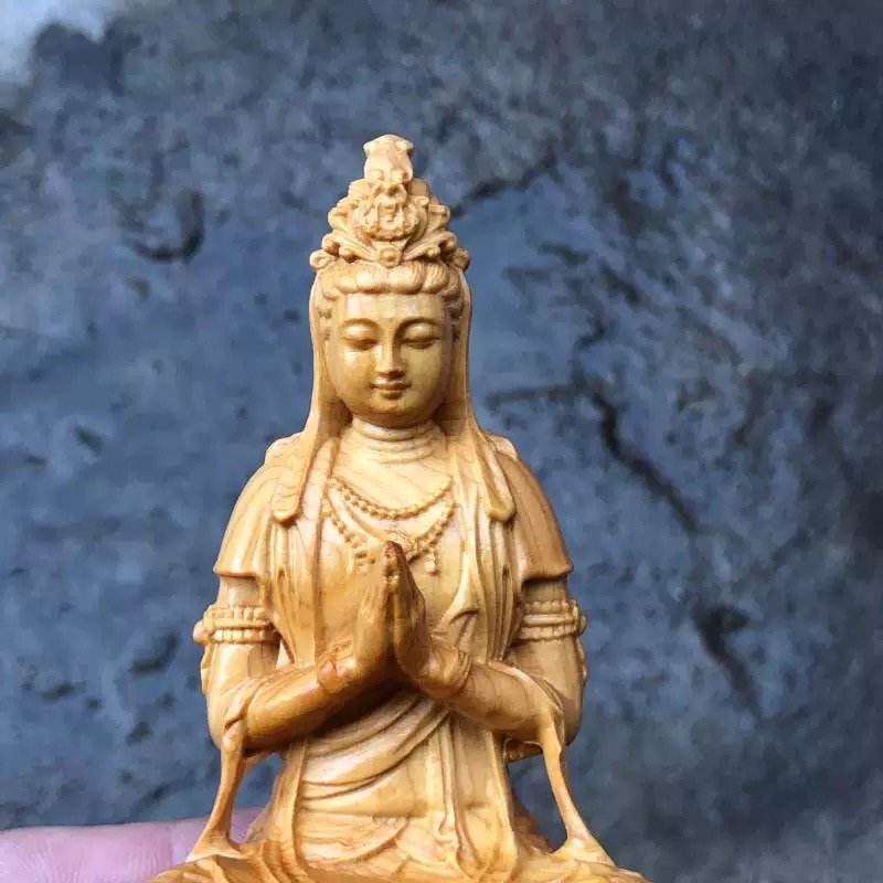 極上質 木彫 ★精密細工 木彫り 仏像置物 自在観音菩薩座像 合掌 xhw0052