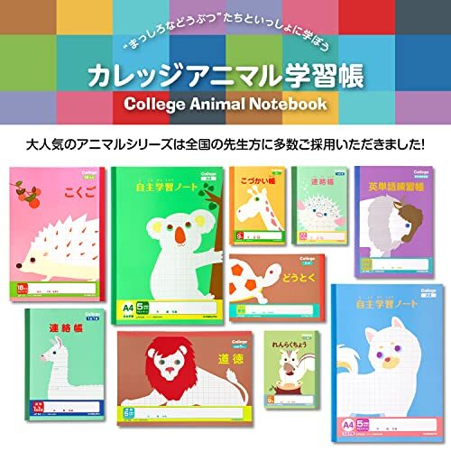 キョクトウ 学習帳 カレッジアニマルは動物の絵柄がかわいい。 裏表紙には、表紙の動物の後ろ姿がデザイン。 勉強の邪魔にならないデザインで、勉強も楽しく頑張れる。 ノートとしての使いやすさも考えられた学習帳。