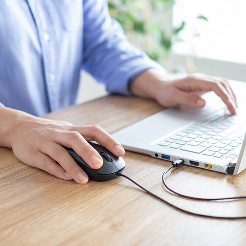 当店は正規販売代理店です。 特長 USB Type-Cコネクタを搭載したパソコンやタブレットで使用できる、有線ブルーLEDマウスです。 Windows・Mac両方で使用できます。 差し込むだけで使える手間なし簡単接続です。面倒なソフトのインストールが不要です。 <ご注意> ※鏡など光を反射する素材や、ガラスなど透明な素材の上でご使用になると、カーソルがスムーズに動かない場合があります。また、規則正しいパターンの上ではトラッキング能力が低下する場合があります。 メーカー保証期間180日 ※当店発注日からになります。 気をつけておりますが、タイミングによっては在庫切れの場合があります。 仕様