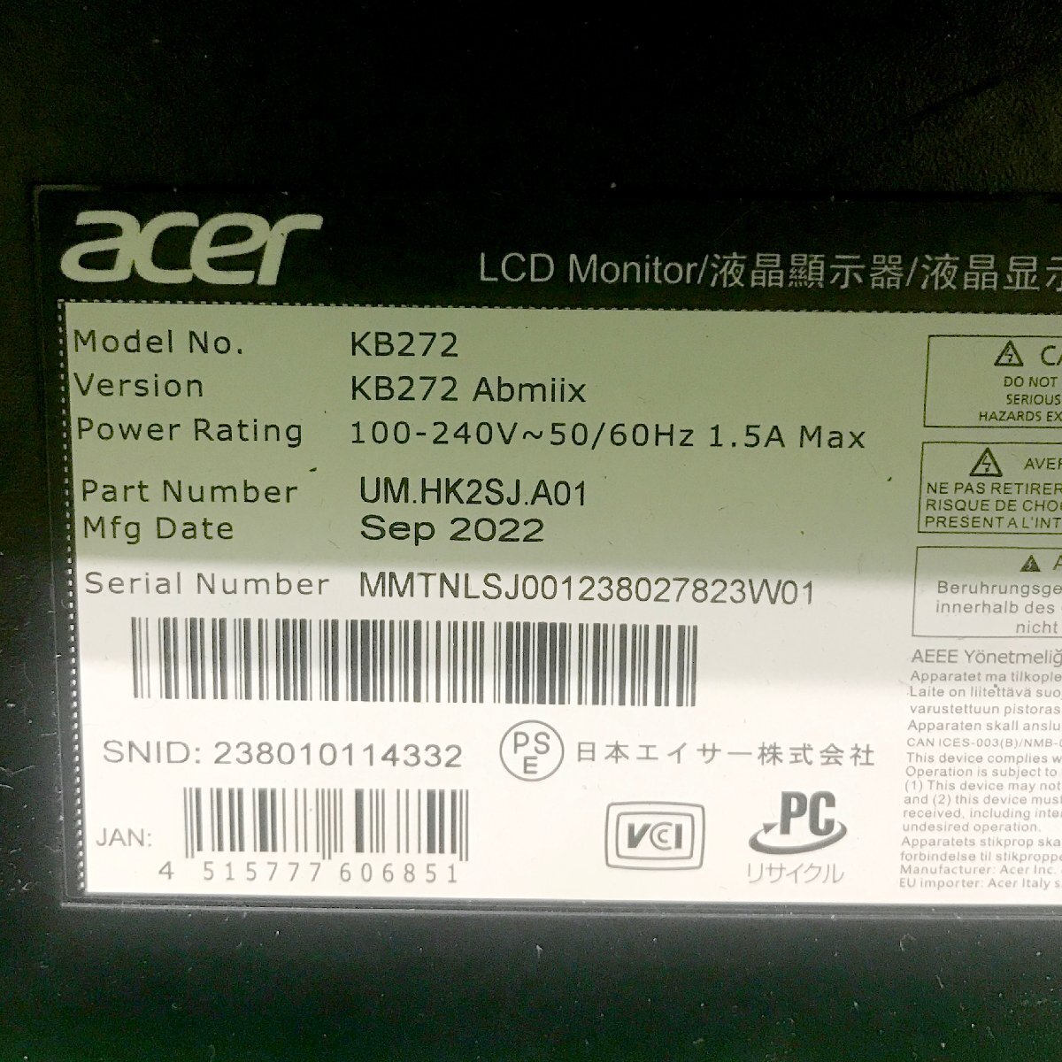 | 橋森i487 acer製 PCモニター 【KB272】◆27インチ◆ モニターアーム ☆動作確認済み☆ | |