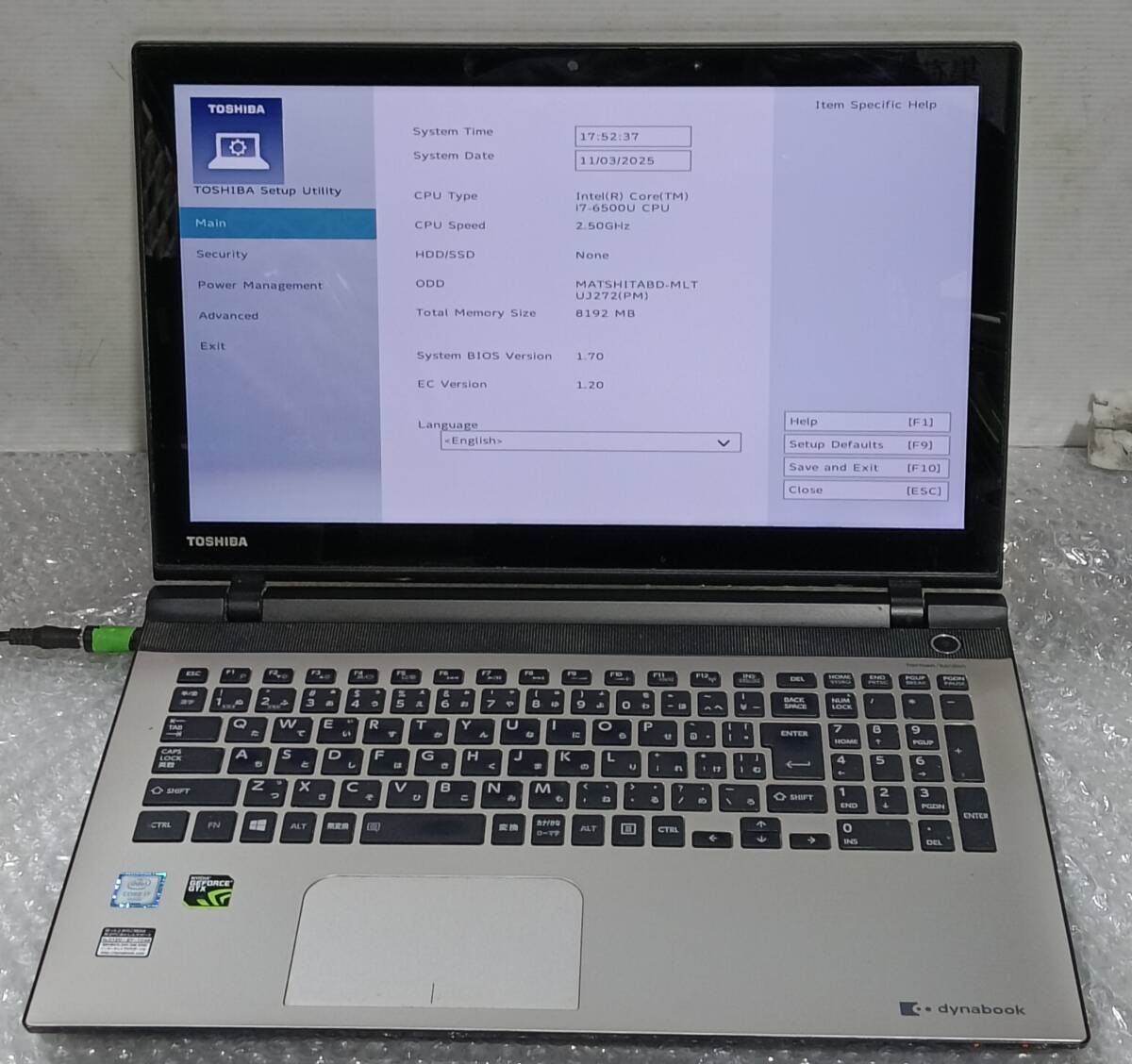 バッテリー不良、TOSHIBA AZ75/TG Core i7-6世代 8GB 15.6インチ ジャンク5206
