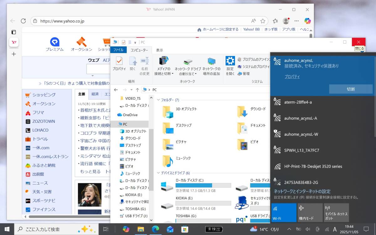 ・BlueTooth(BlueToothタイプのマウスに接続)