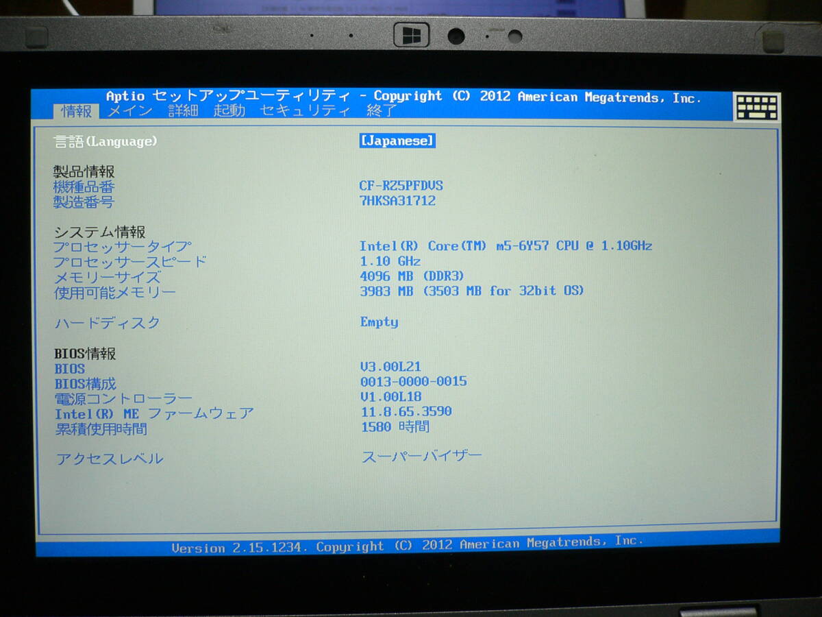 プロセッサータイプ :m5-6Y57 1.10GHz