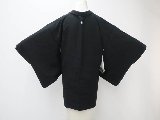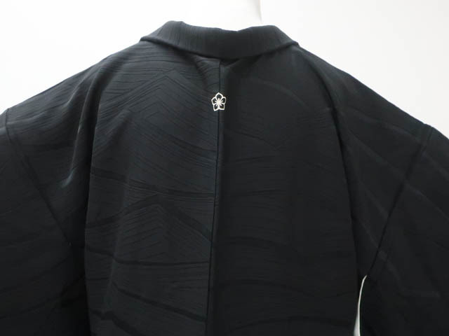リサイクル商品のため、右後身頃に汚れがございますが着用可能なお品です。 地色は黒です。 1枚目の画像が近いお色かと思われます。 素材は正絹です。 |