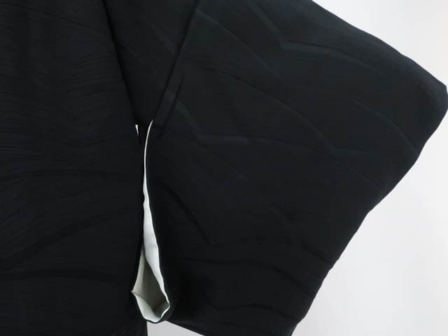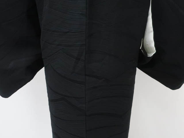 リサイクル商品のため、右後身頃に汚れがございますが着用可能なお品です。 地色は黒です。 1枚目の画像が近いお色かと思われます。 素材は正絹です。 |