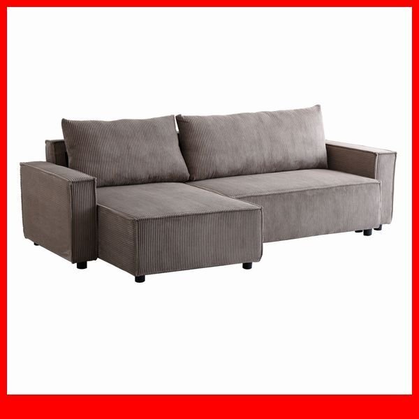 ソファ★新品/コーデュロイ生地 カウチソファベッド 3人掛け/カウチ左右入れ替え可 座面下収納部付き/ブラウン/a1
