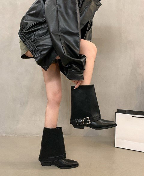 ・美脚効果抜群のポインテッドトゥ& トレンドのフットカバーレイヤードデザインブーツです。