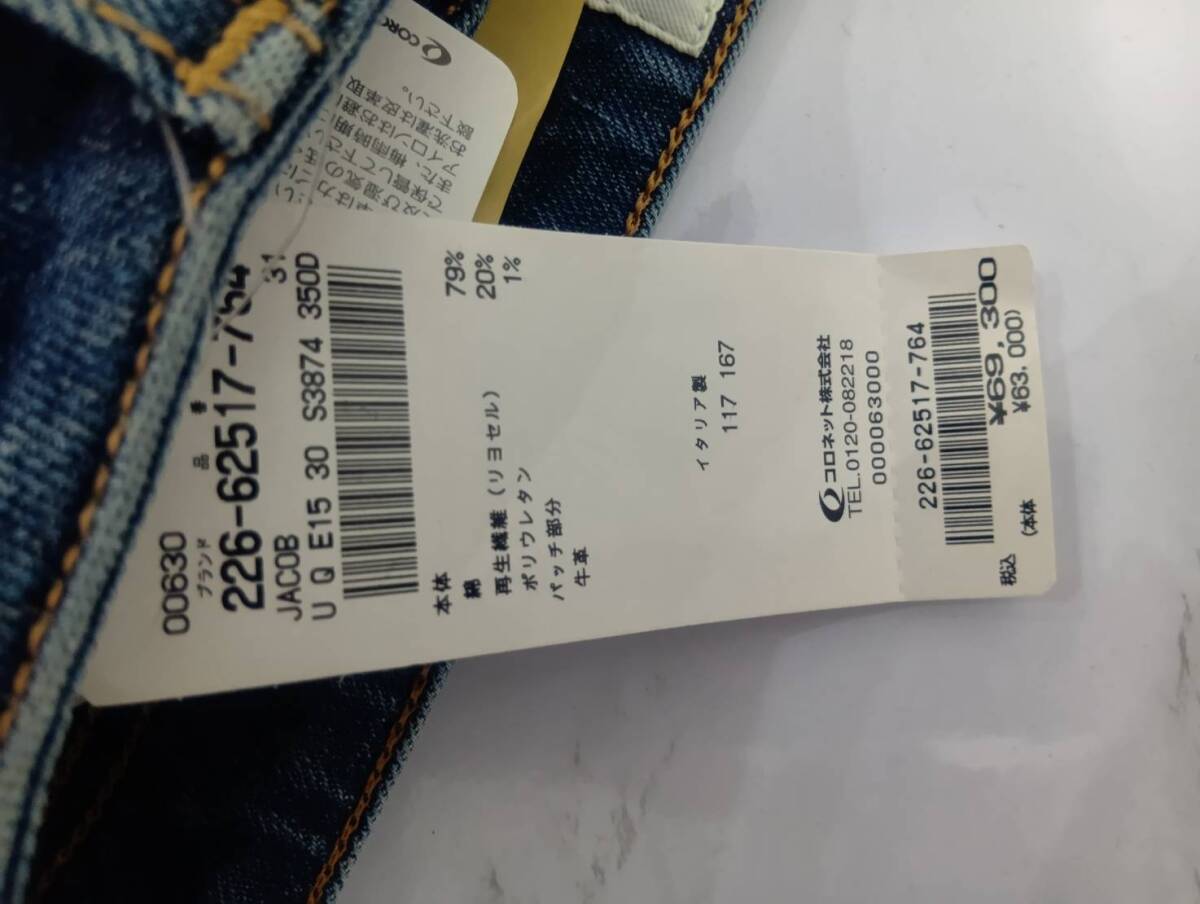 JACOB COHEN(ヤコブ コーエン)  ベージュラベル ジーンズ サイズ31(ウエスト約79㎝) イタリア製 セレブライン 定価税込69300円