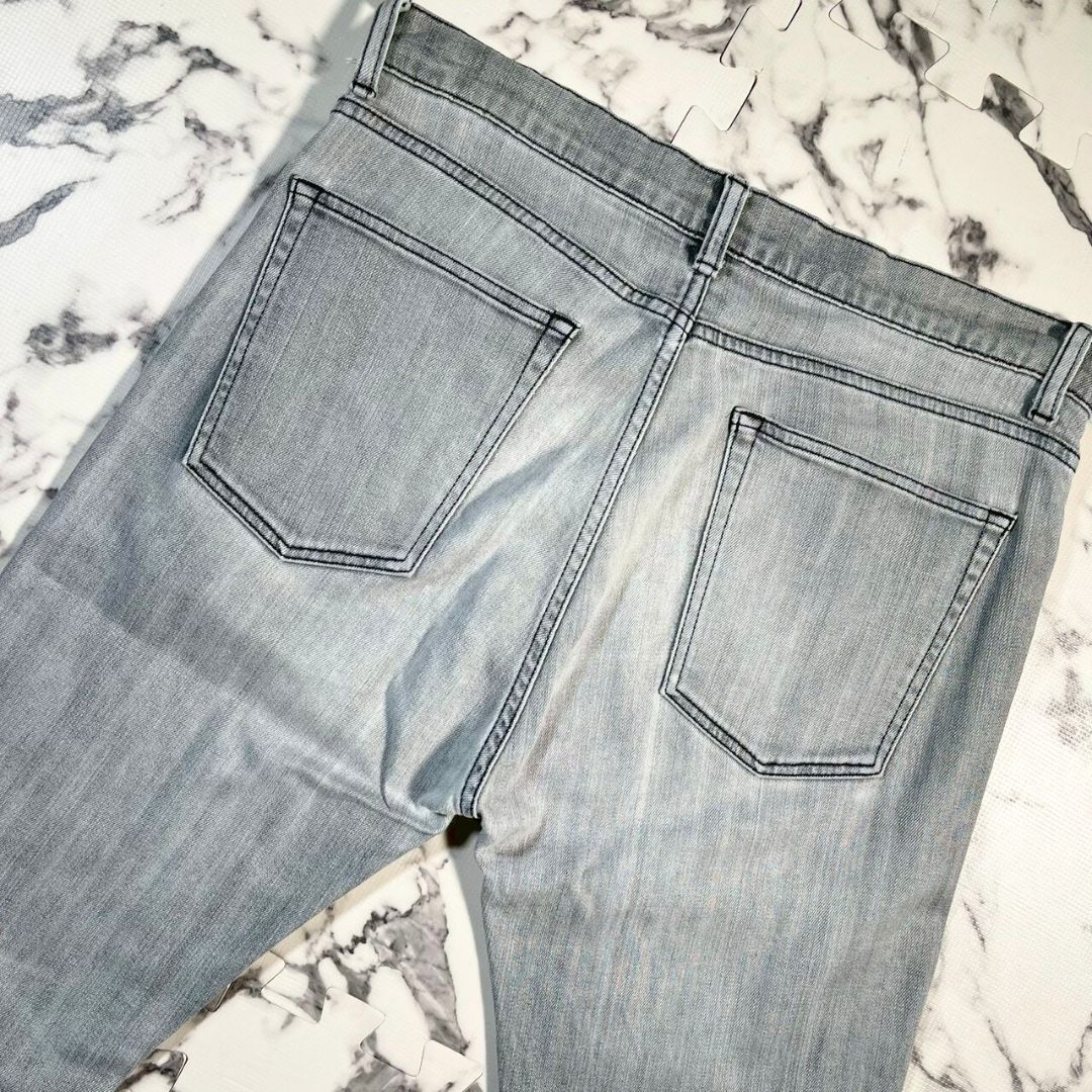 グレーの色調は、ライトブルーやインディゴよりも洗練された静けさを纏い、秋冬の装いに深みを与えてくれます。テーパード気味のラインが脚をすっきりと見せ、スニーカーからレザーシューズまで、幅広いスタイルに自然に溶け込みます。