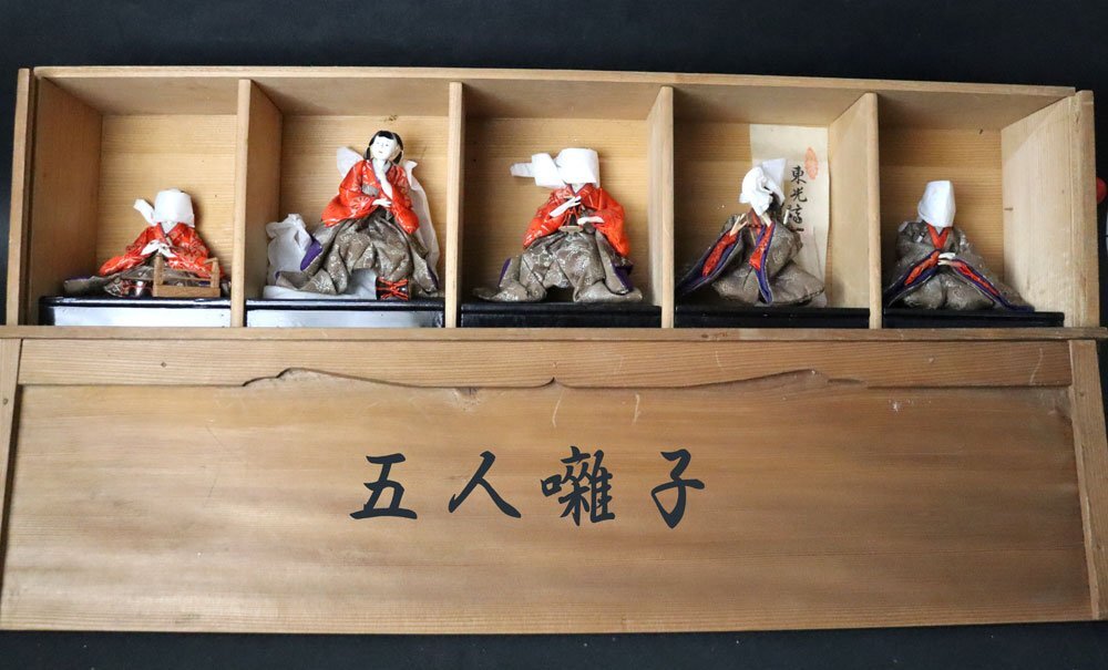 ・商品は  大正~時代物 五人囃子 雛人形 時代木箱  です。
