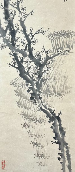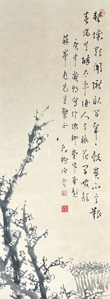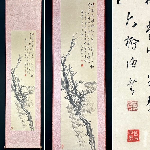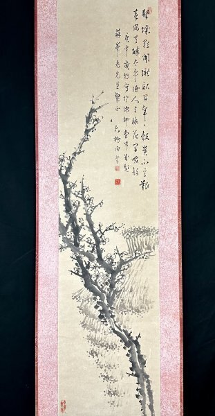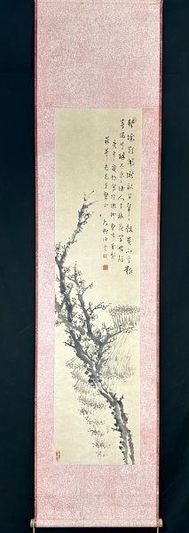 e59H10【真作】六柳言長「梅画賛」掛軸 紙本 肉筆 花図 南画家 書家 公卿 男爵 重春塘 北村龍象 小林卓斎に学ぶ 貫名菘翁に私淑 京都の人