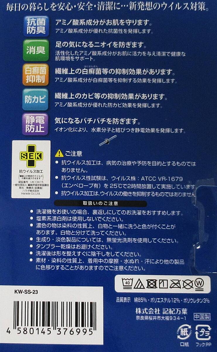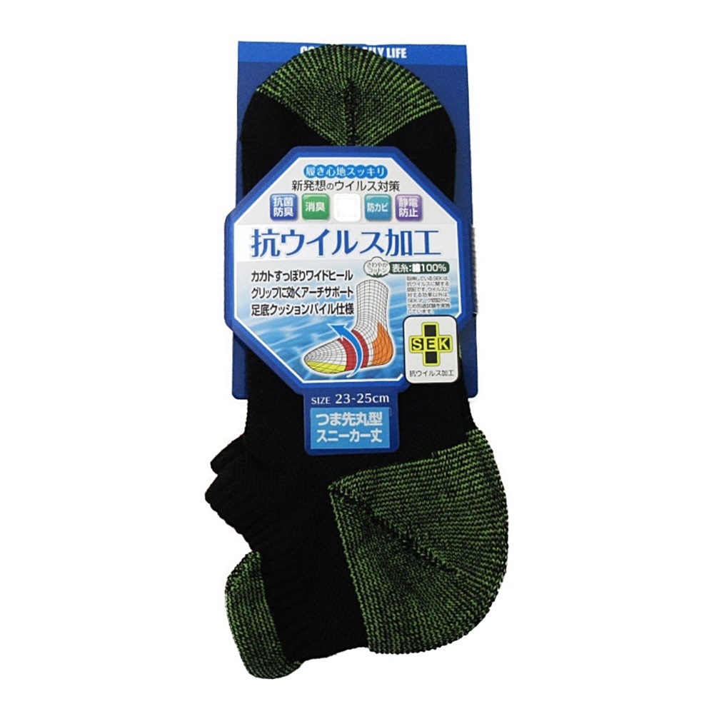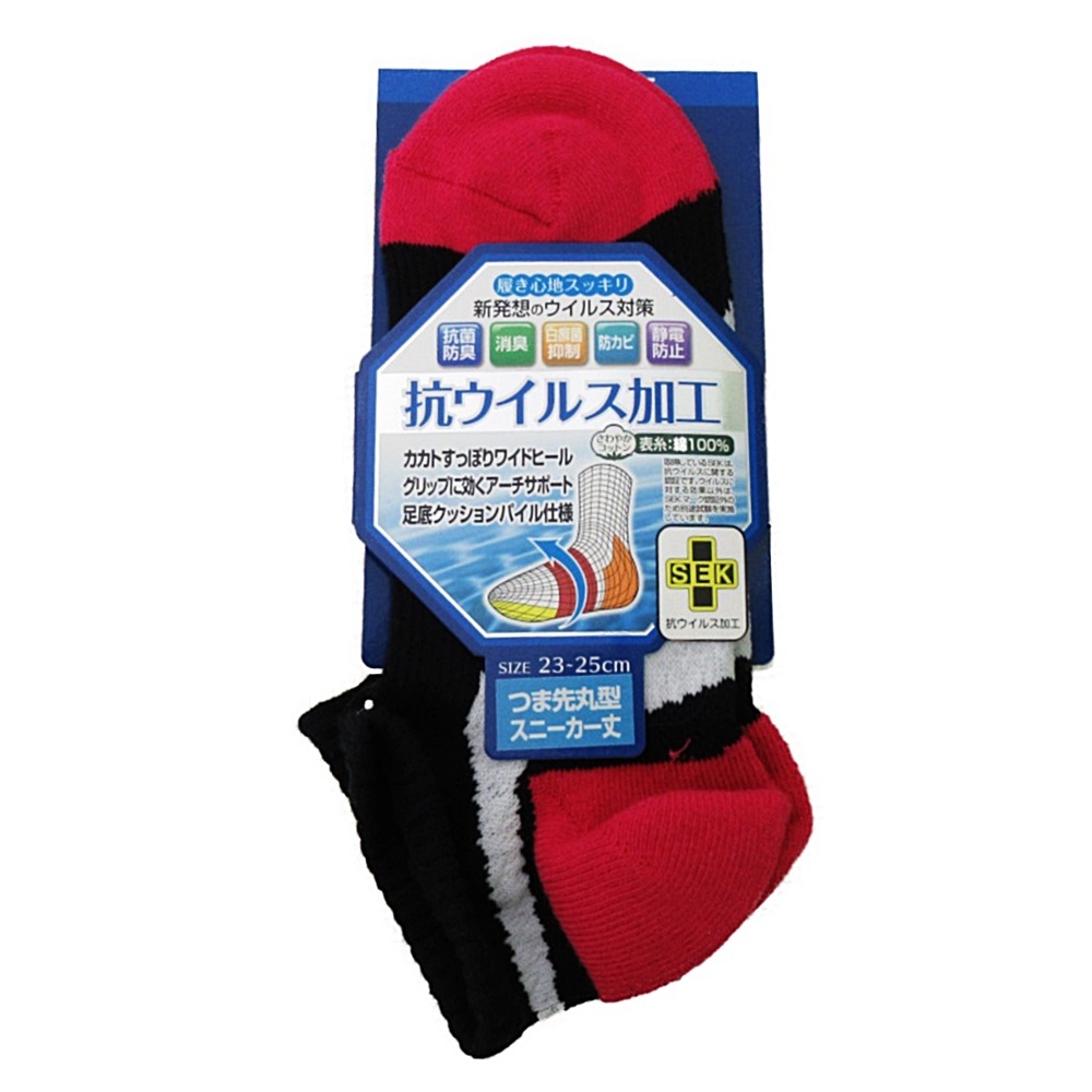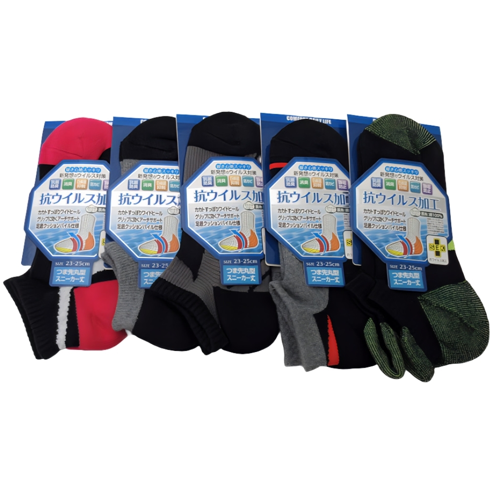 履き心地すっきり スニーカー丈 ソックス 5足セット SEK抗ウイルス加工 レディース size 23-25cm 表糸綿100% 綿混素材