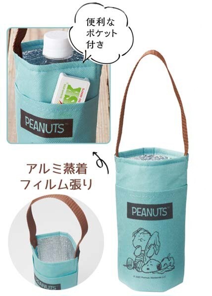 PEANUTS 花生漫画「スヌーピーメイト ポケット付ボトルホルダー ブルーver. (約180×125×80mm)」