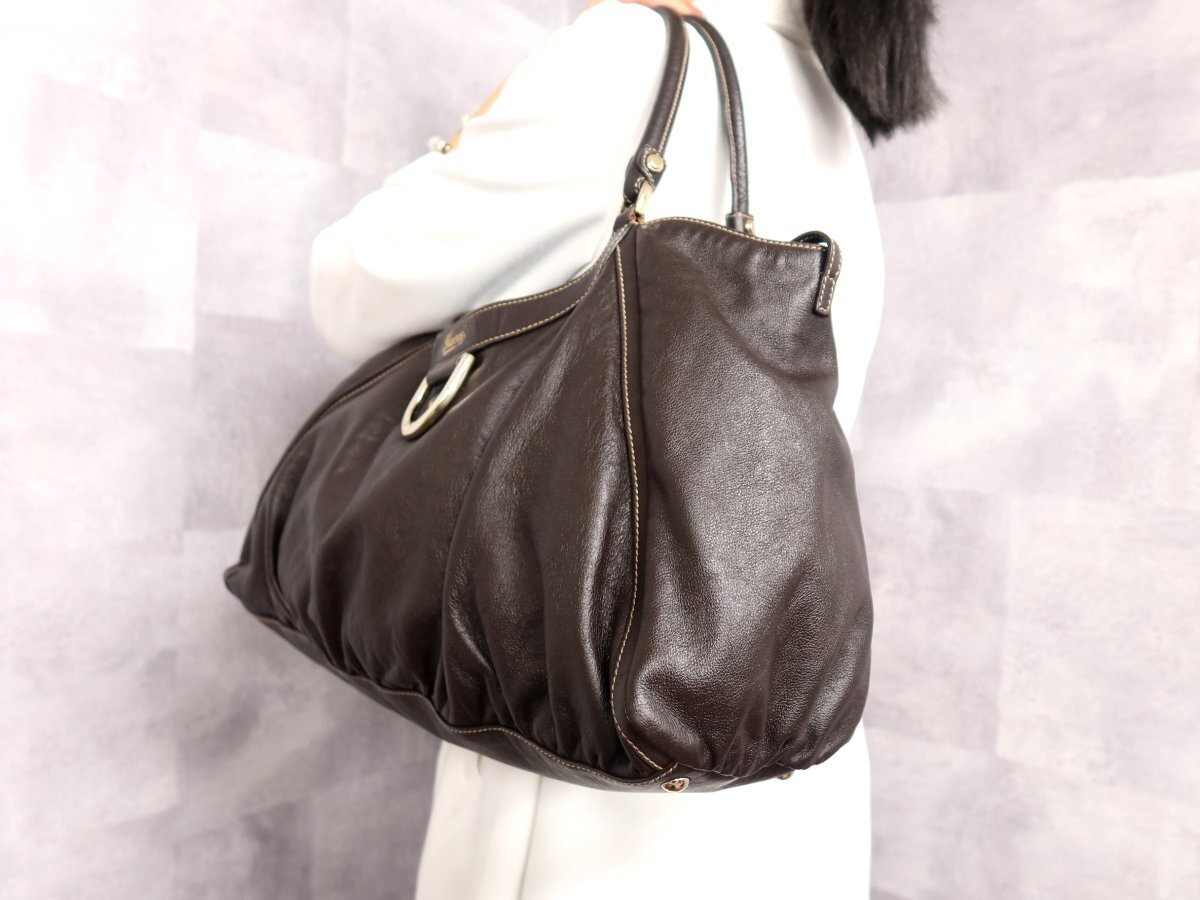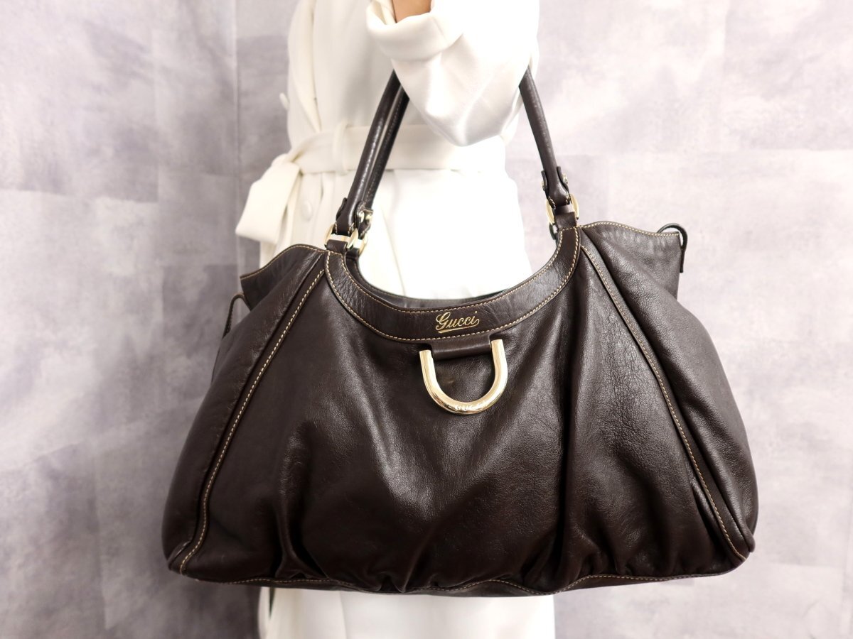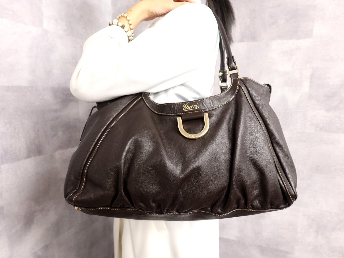 ●超美品●GUCCI グッチ●アビー●カーフ レザー 本革●トート バッグ●ダークブラウン●ゴールド金具●イタリア製●A4 収納 書類●Js61964