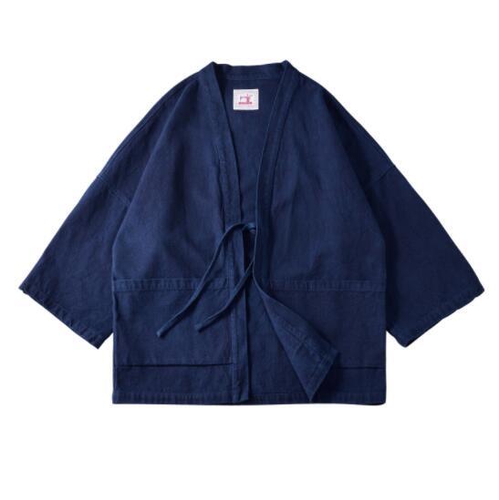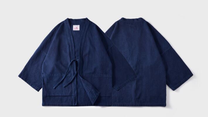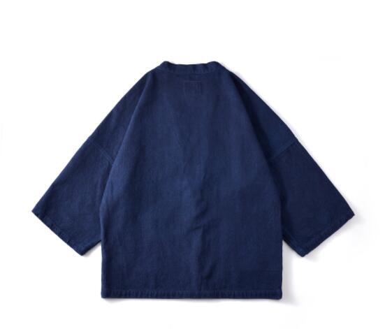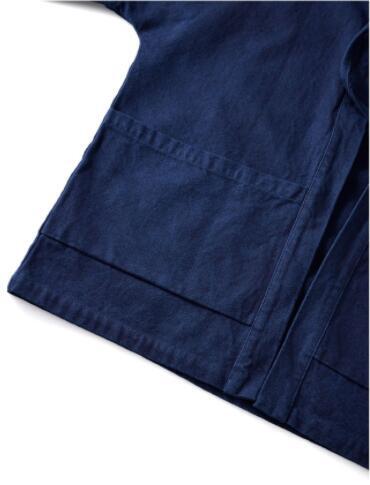 職人手作り 藍染 カバーオール 半纏 褞袍 綿&麻 ワークジャケット ゆったり 大きいサイズ 天然藍 インディゴ 薄手 M~2XL